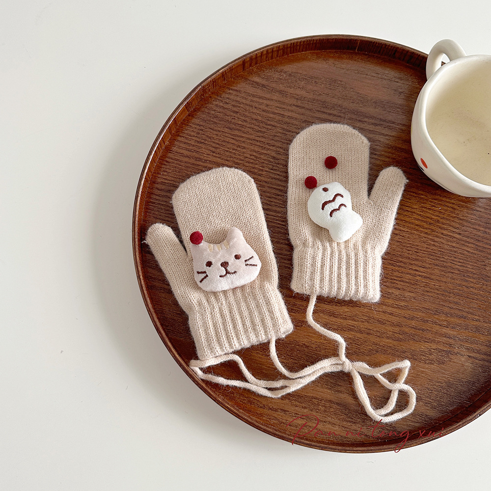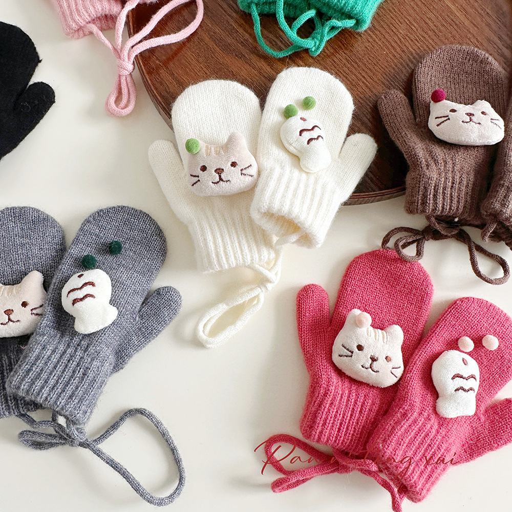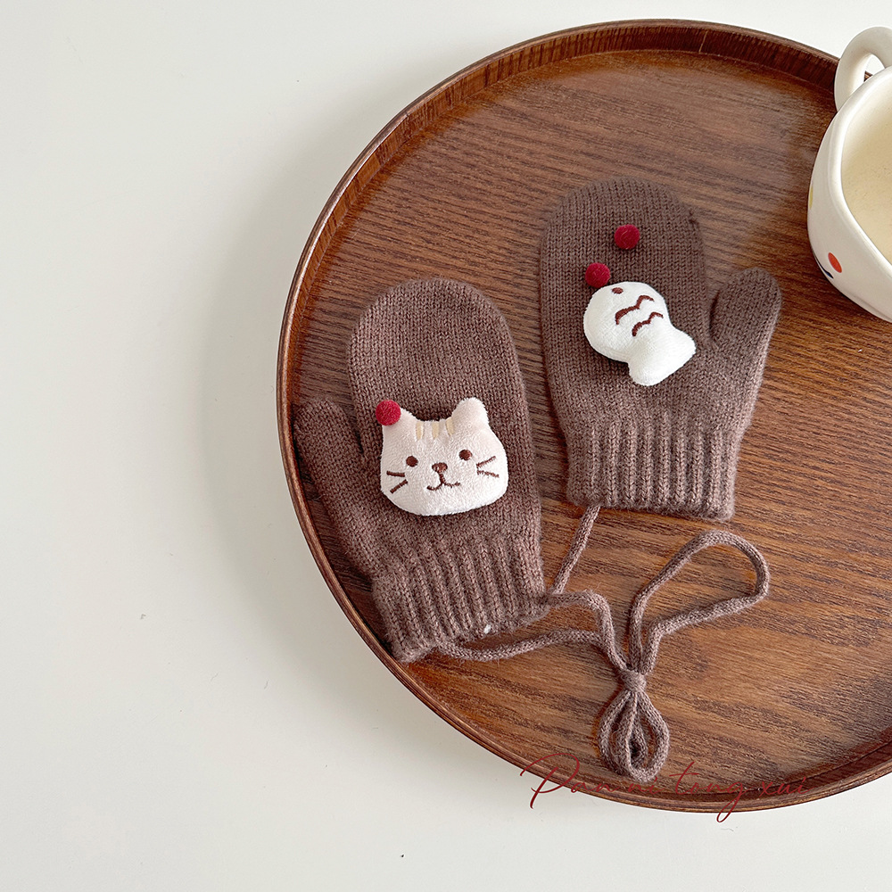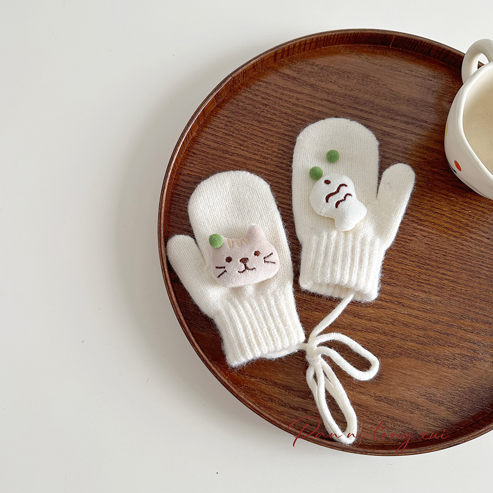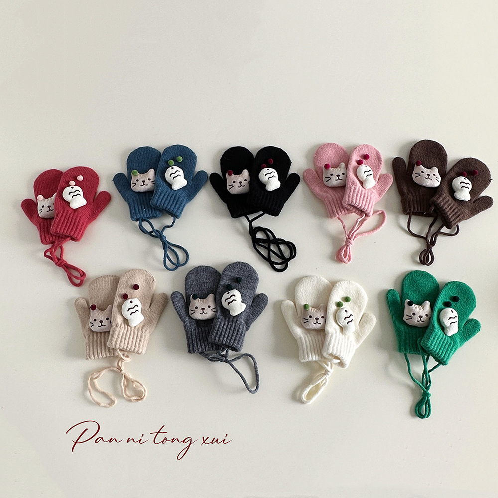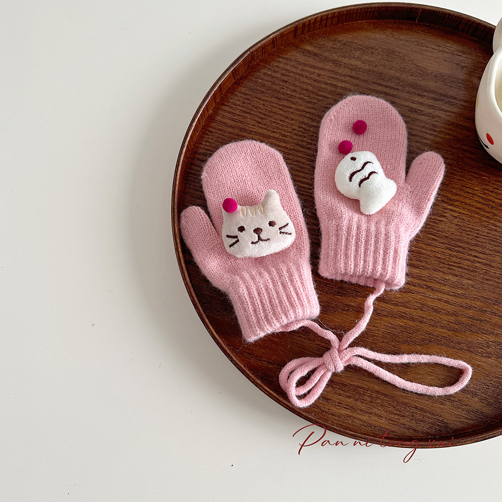 소년 소녀를위한 아기의 끈 가방 손가락 장갑 가을과 겨울 귀여운 만화 야외 따뜻한 3 세 소녀 겨울 장갑