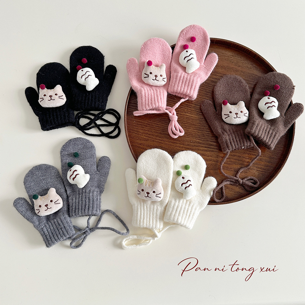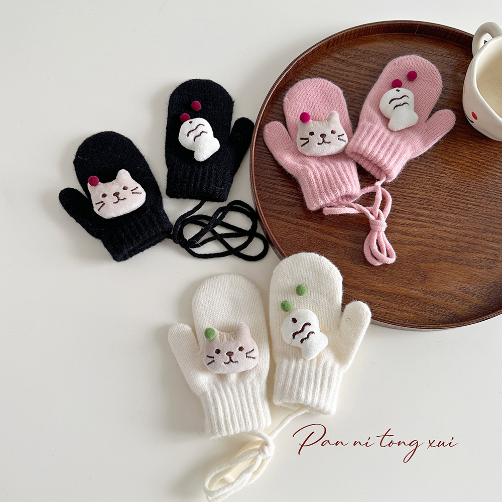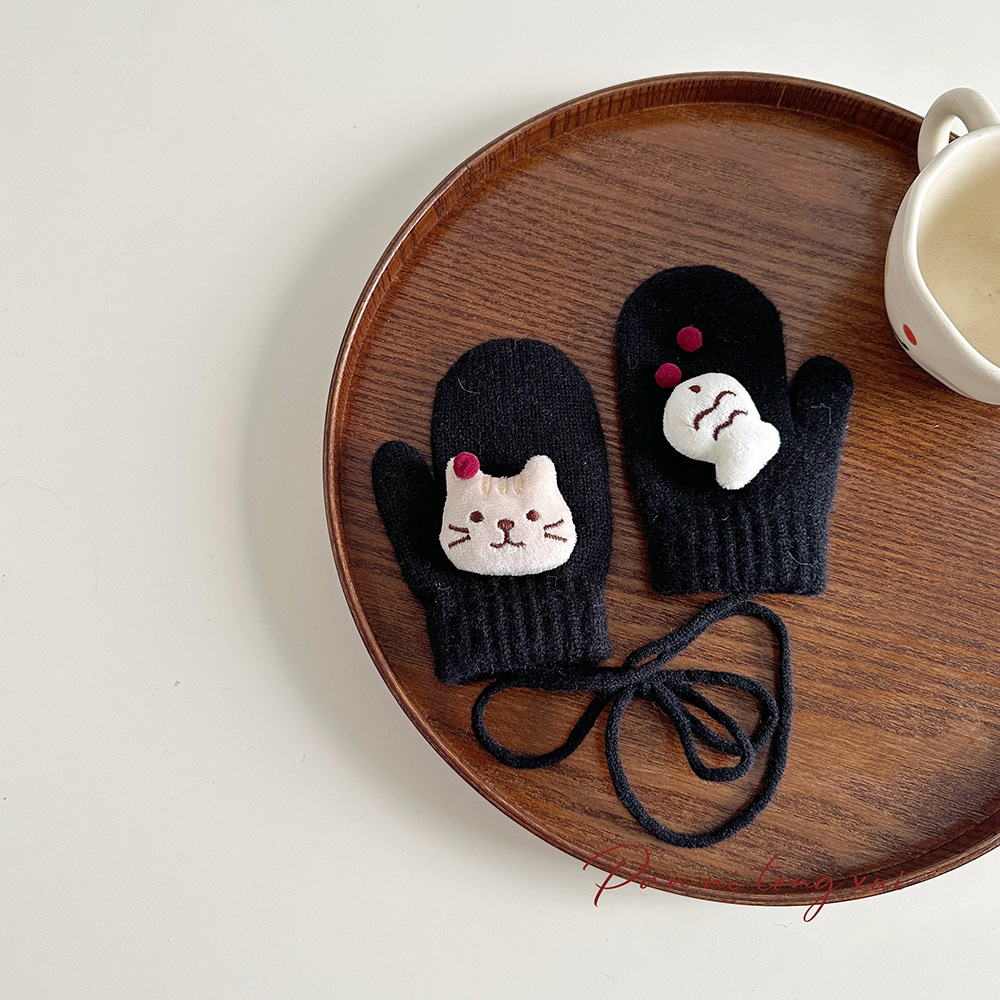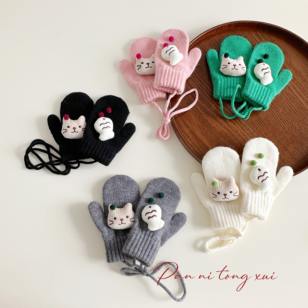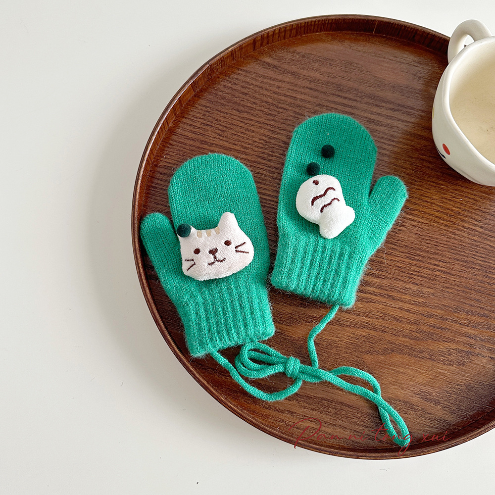 소년 소녀를위한 아기의 끈 가방 손가락 장갑 가을과 겨울 귀여운 만화 야외 따뜻한 3 세 소녀 겨울 장갑