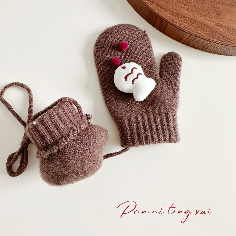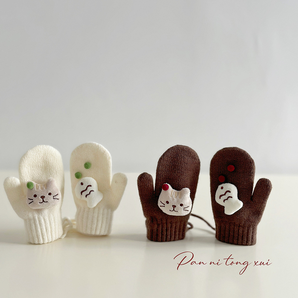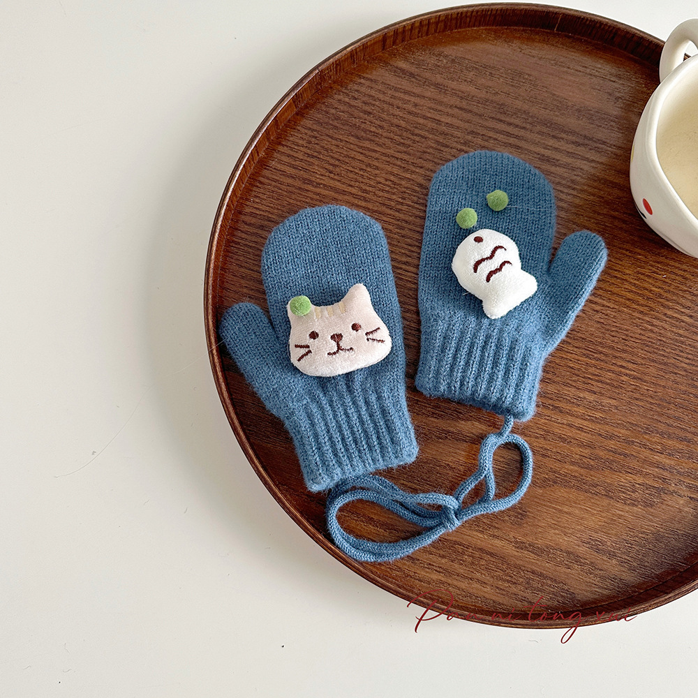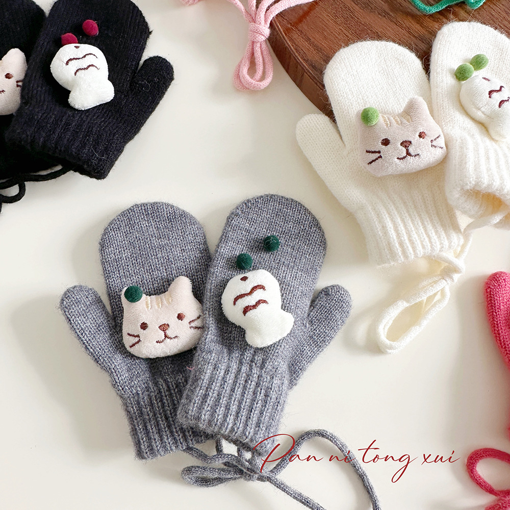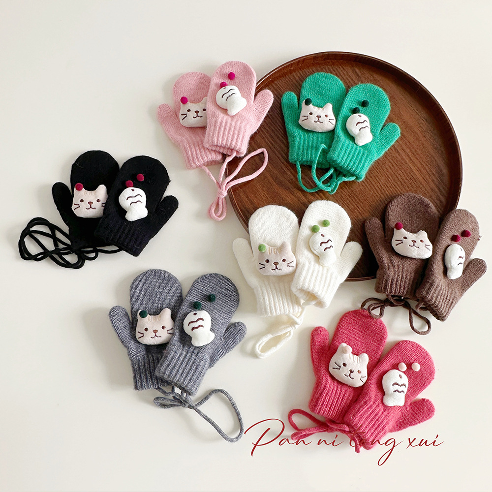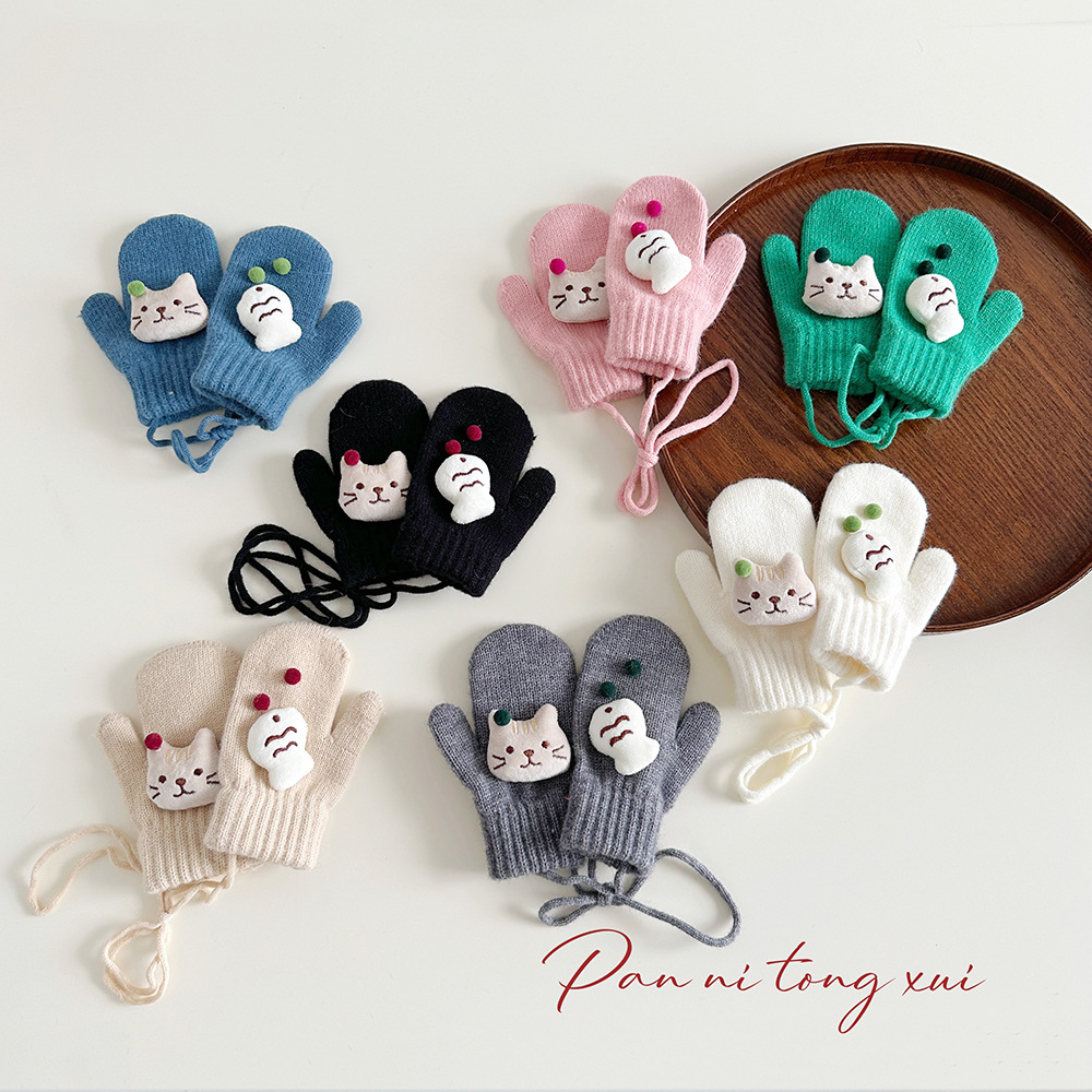 소년 소녀를위한 아기의 끈 가방 손가락 장갑 가을과 겨울 귀여운 만화 야외 따뜻한 3 세 소녀 겨울 장갑