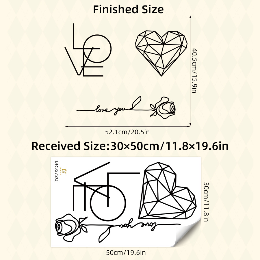 간단한 기하학적 사랑 발렌타인 데이 영어 로즈 자기 접착 벽 스티커 소녀 스타일 룸 장식 스티커 BR3272Q스토어 가기