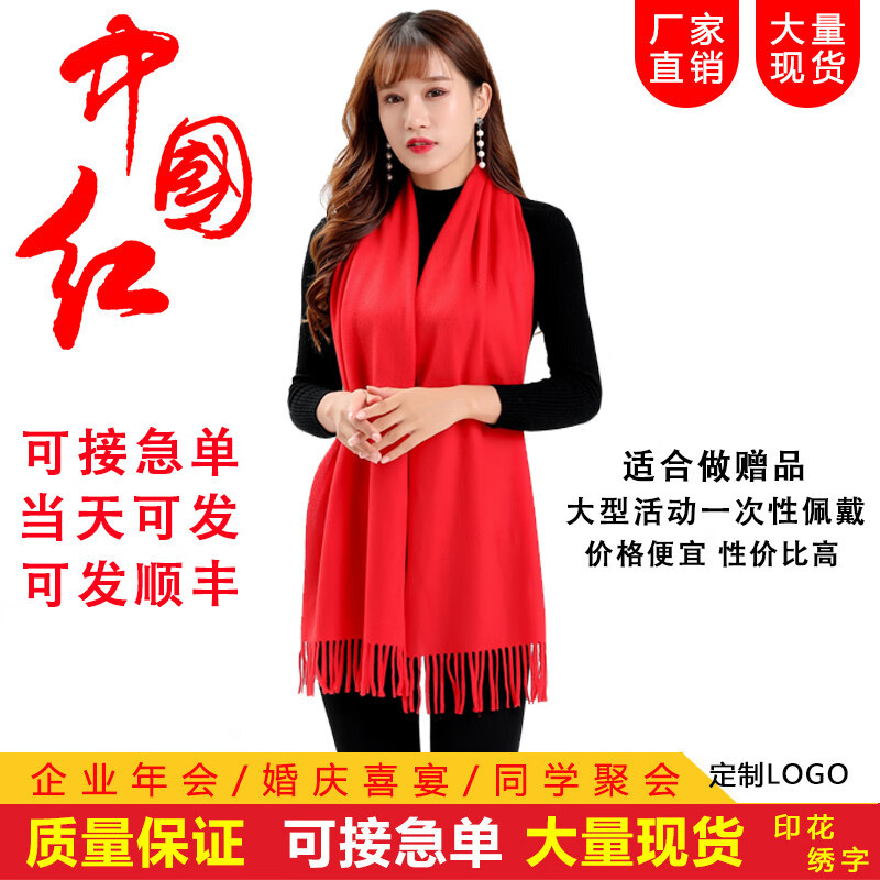 연례 회의 빨간 스카프 공장 직접 회사 선물 광고 캠페인 빨간 스카프 양면 벨벳 목도리 인쇄 로고스토어 가기