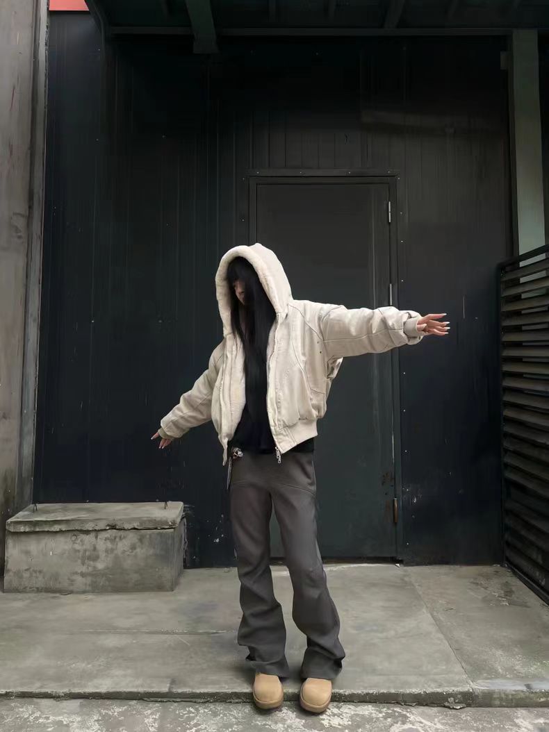 RDT 남성용 | 지산 조각 기모 두꺼운 자켓 남성용 클렌핏 헤비 캔버스 오래 된 코튼 패딩 재킷스토어 가기