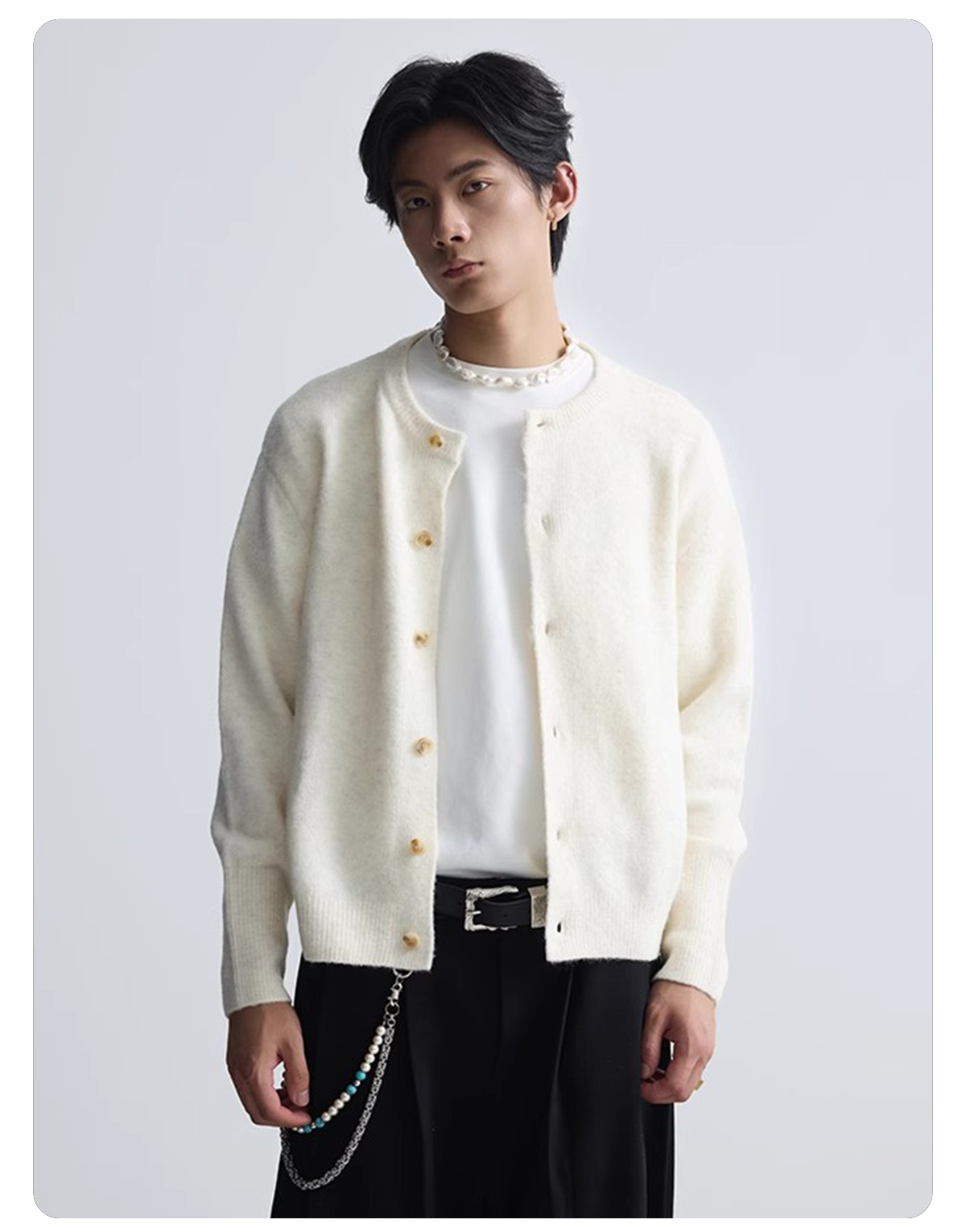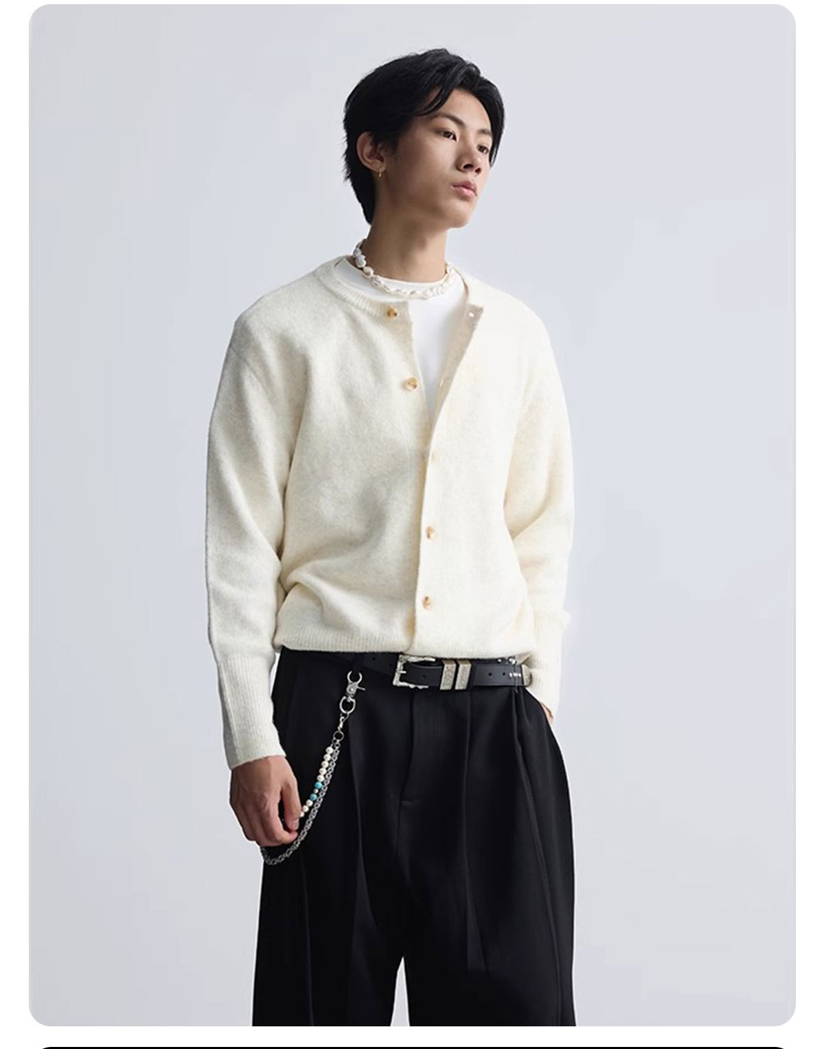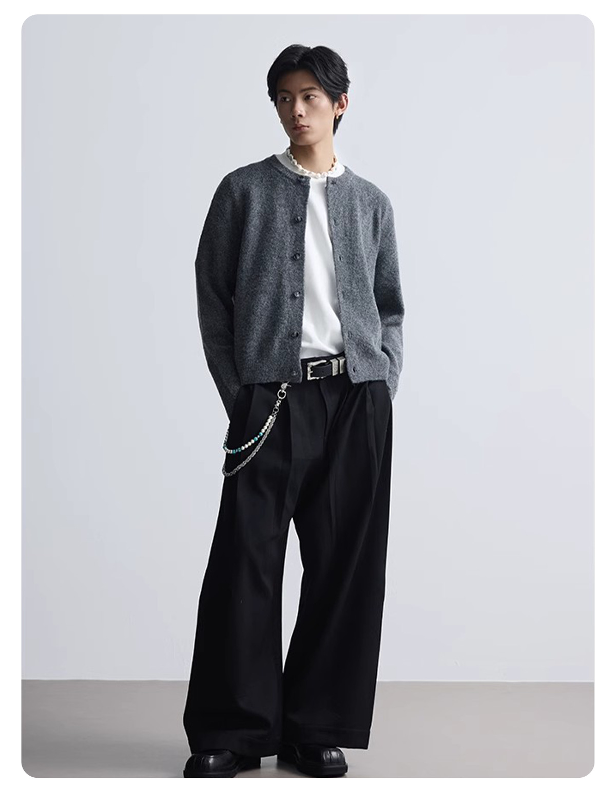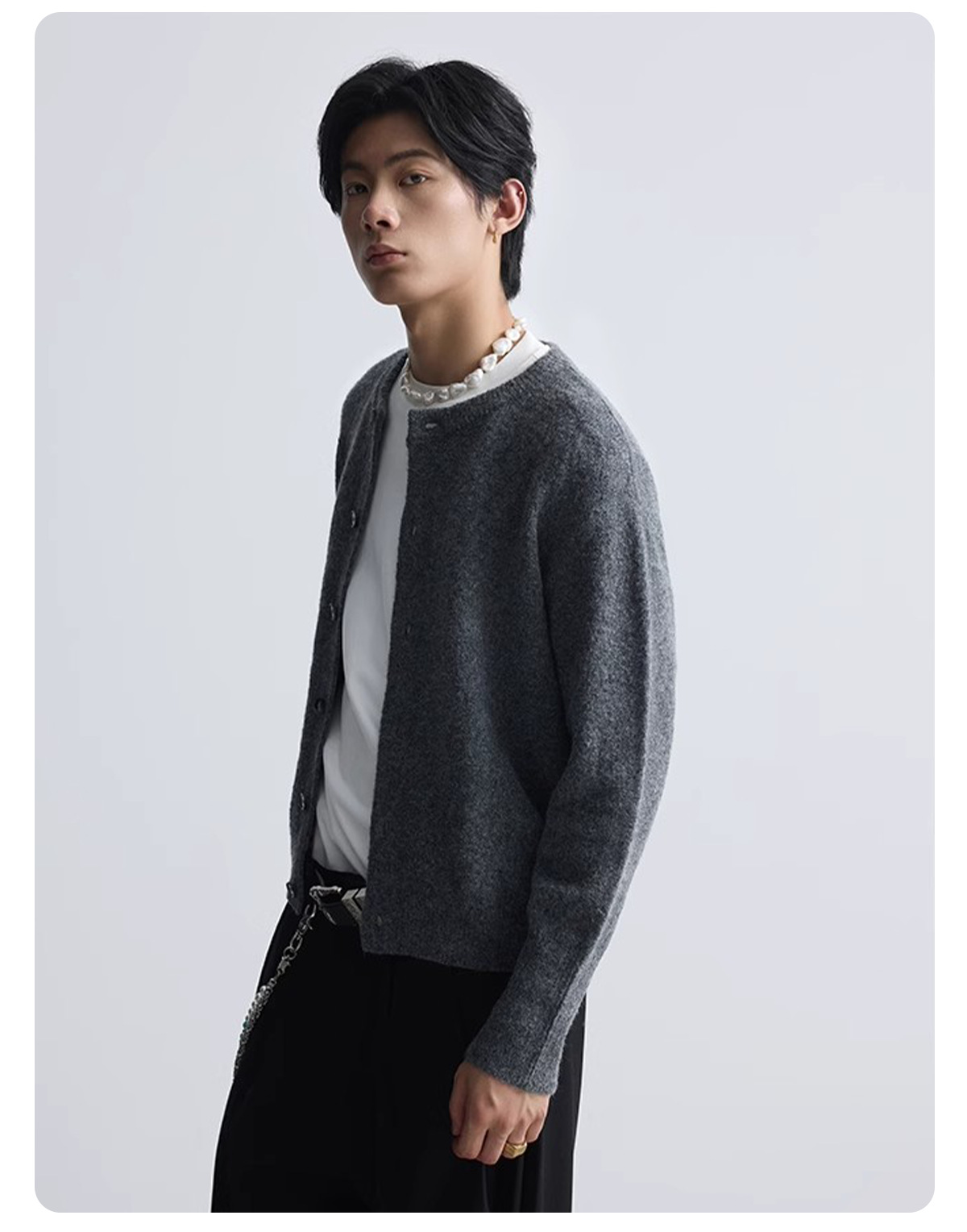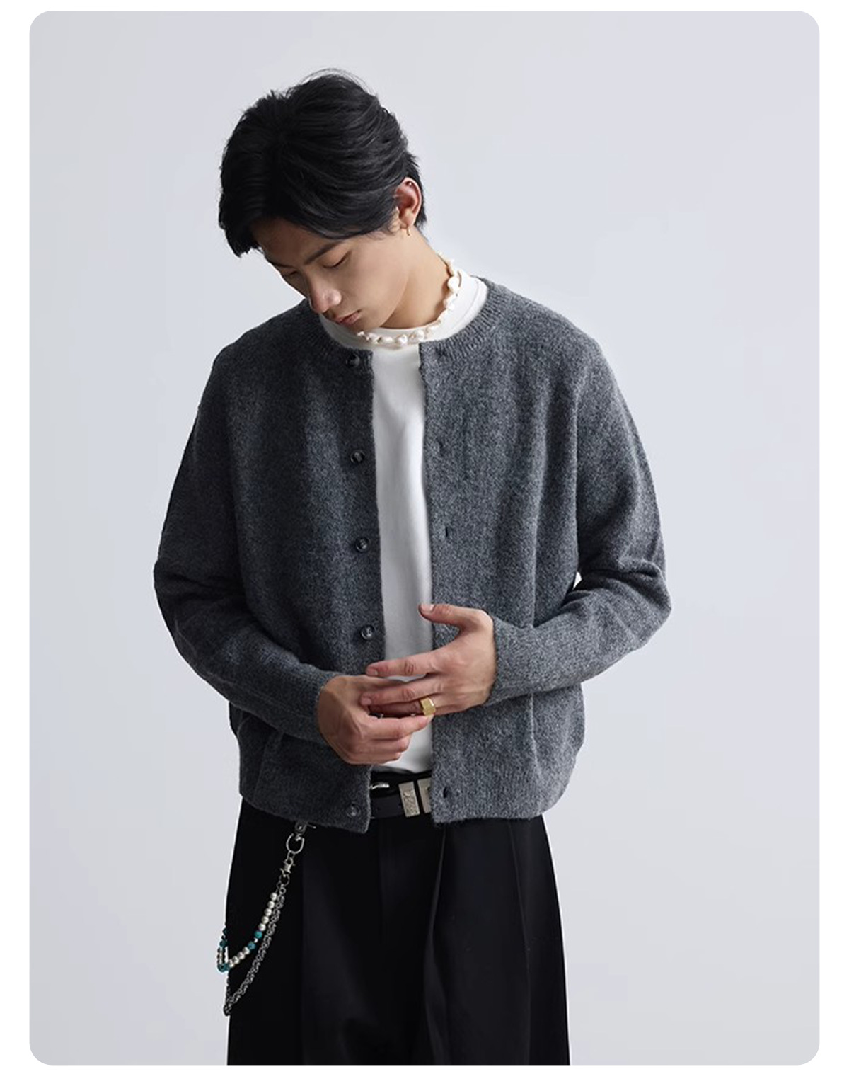 TAICHIISM 양모 블렌드 카디건 버튼 니트 라운드 넥 더블 베일 카디건 가을과 겨울 올 매치 게으른 스웨터