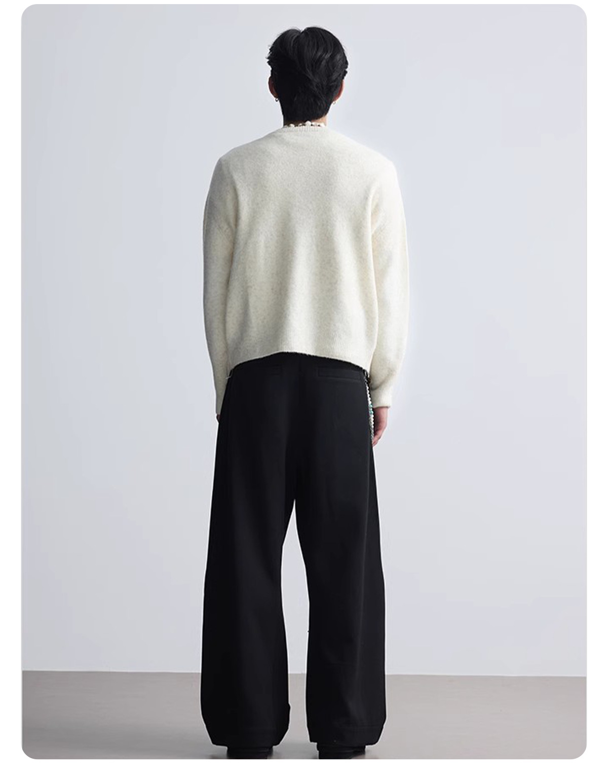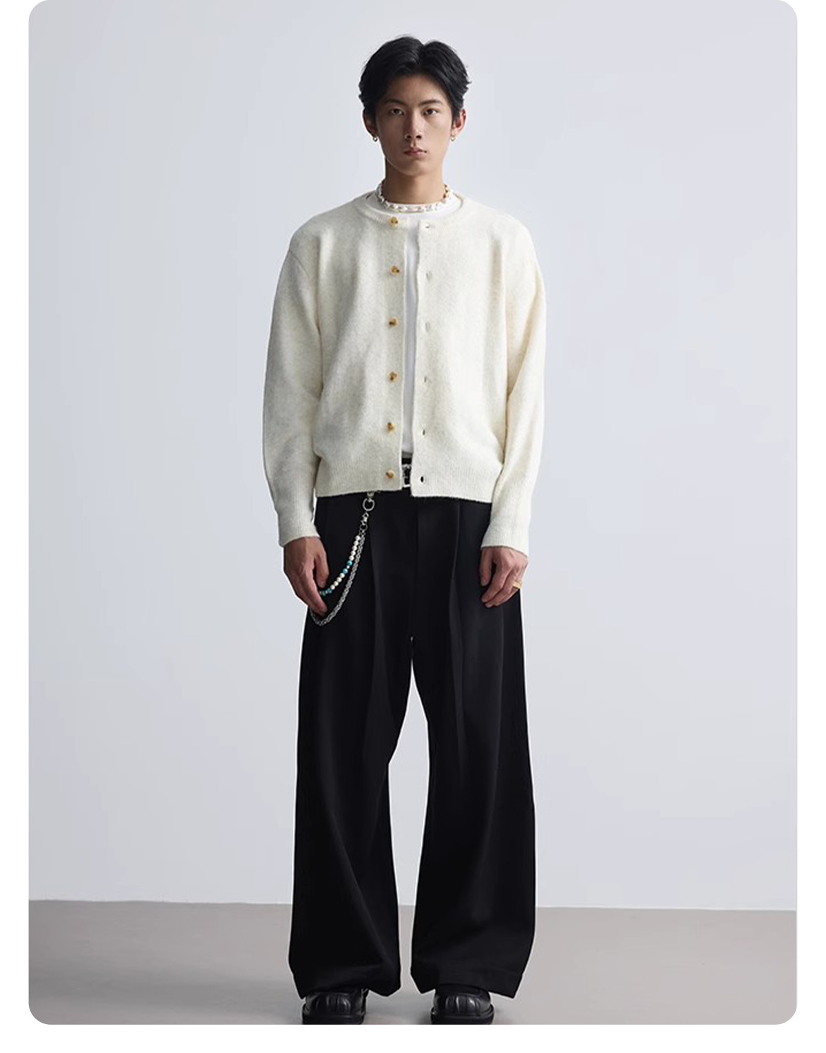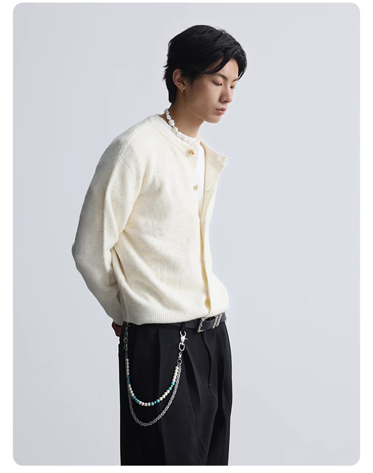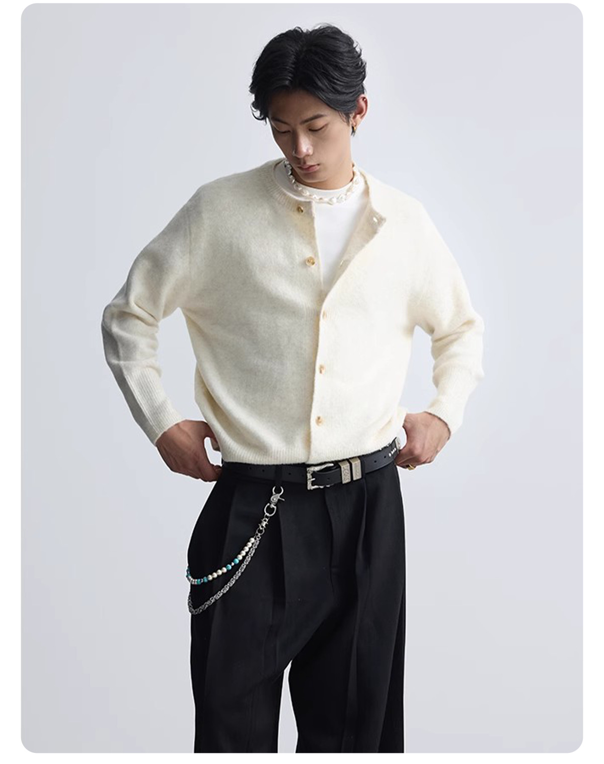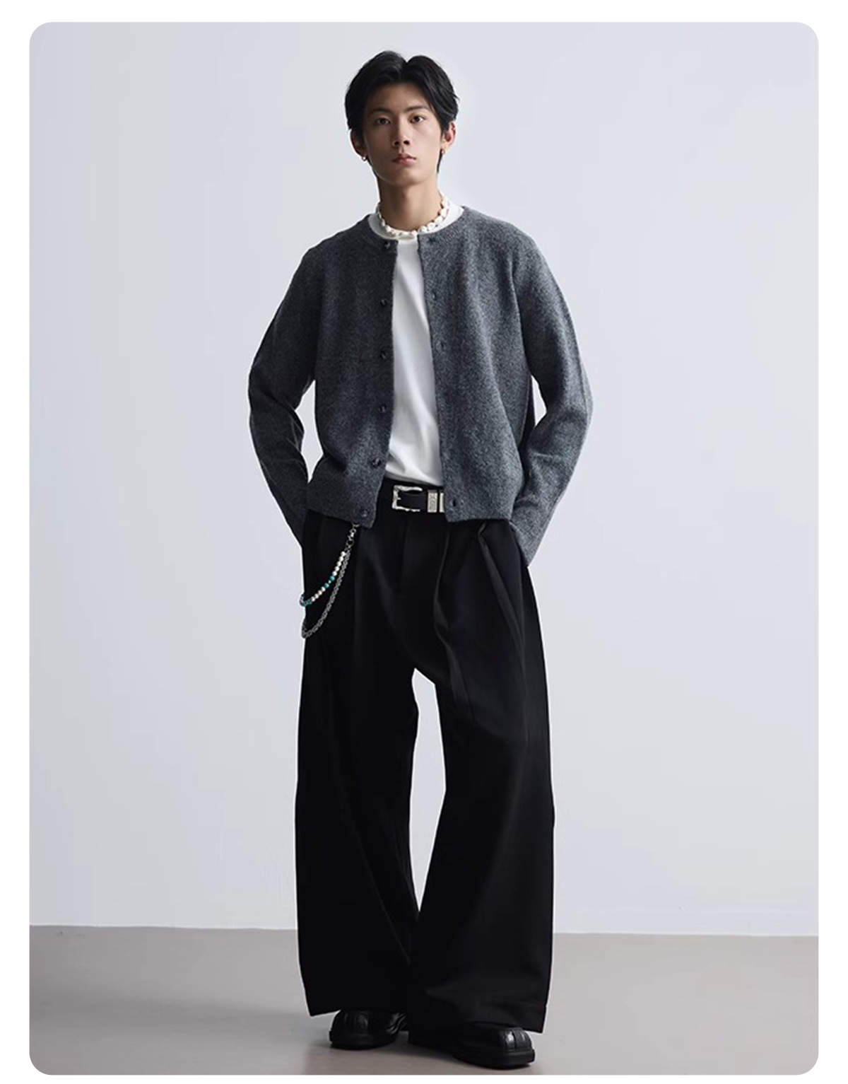 TAICHIISM 양모 블렌드 카디건 버튼 니트 라운드 넥 더블 베일 카디건 가을과 겨울 올 매치 게으른 스웨터