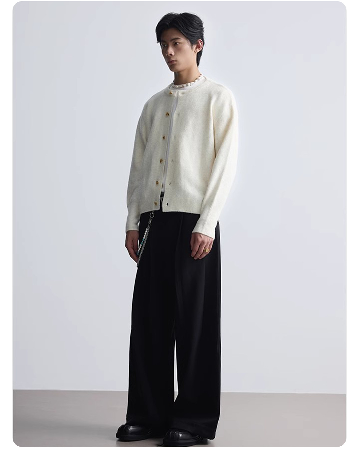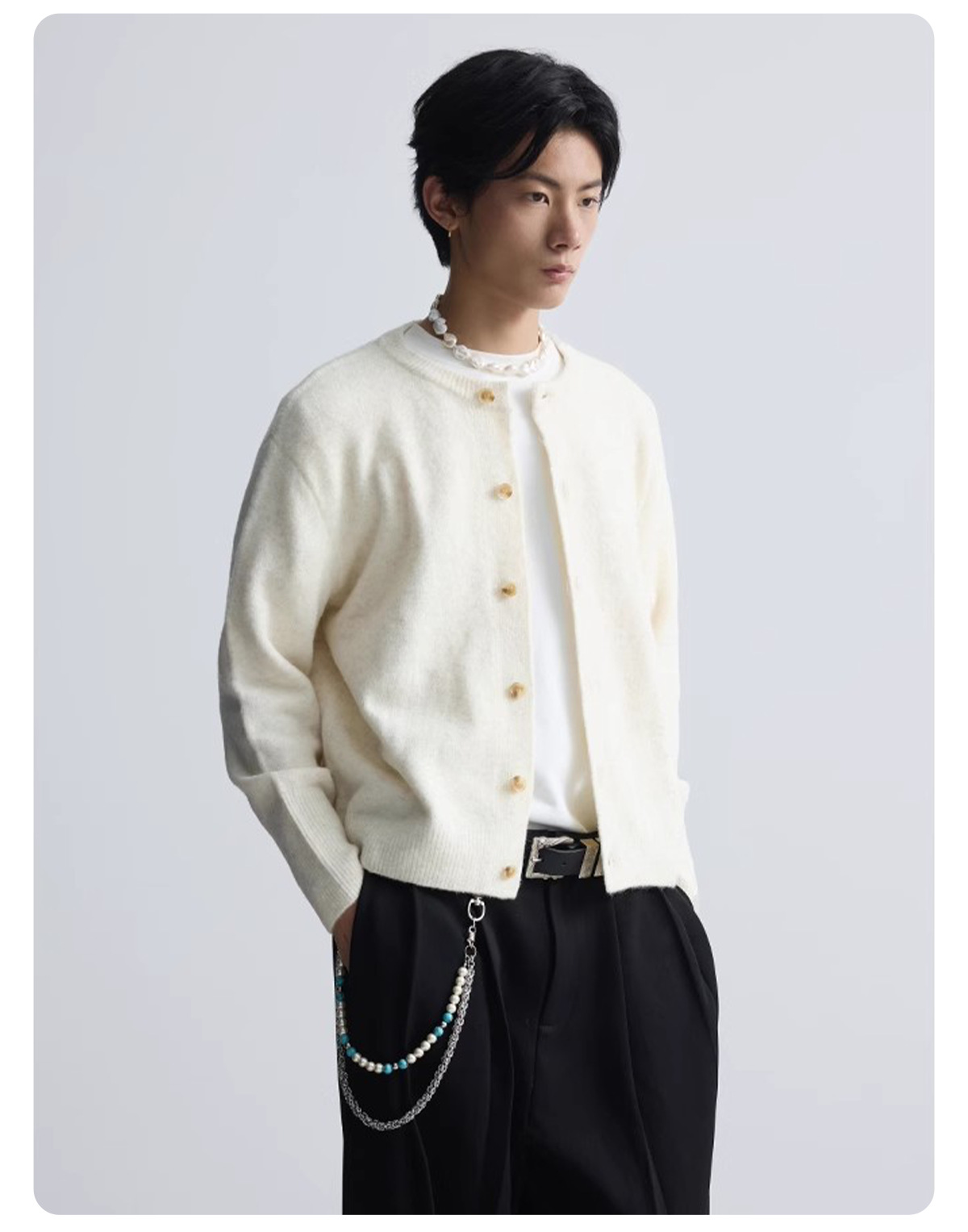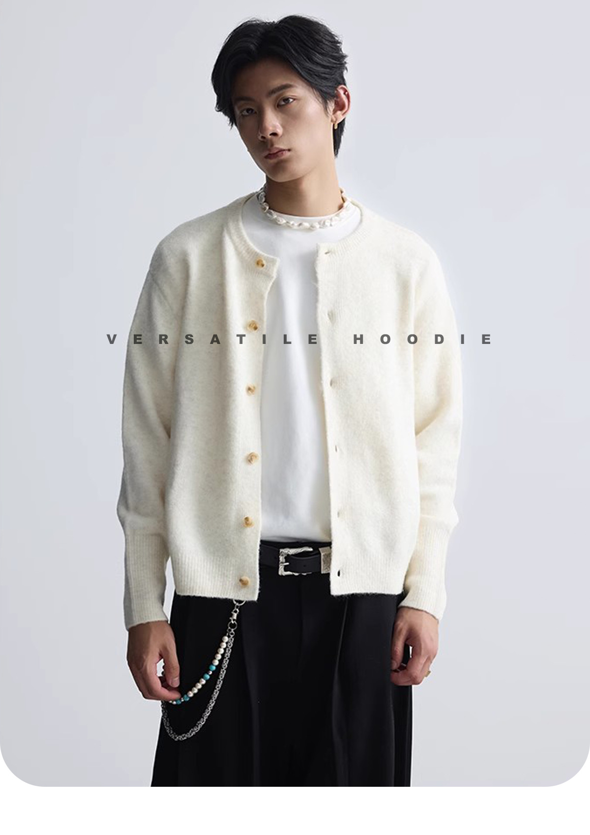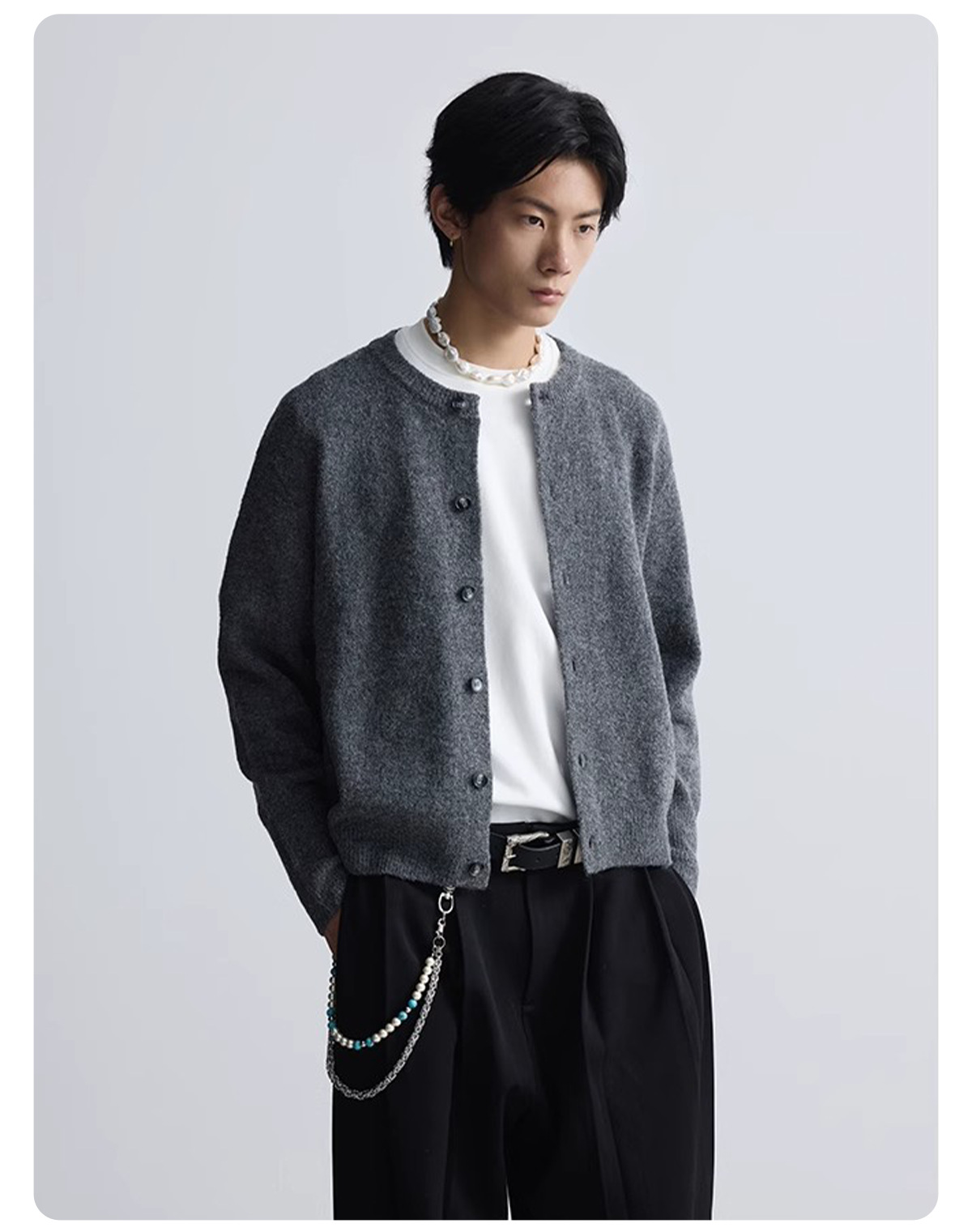 TAICHIISM 양모 블렌드 카디건 버튼 니트 라운드 넥 더블 베일 카디건 가을과 겨울 올 매치 게으른 스웨터스토어 가기