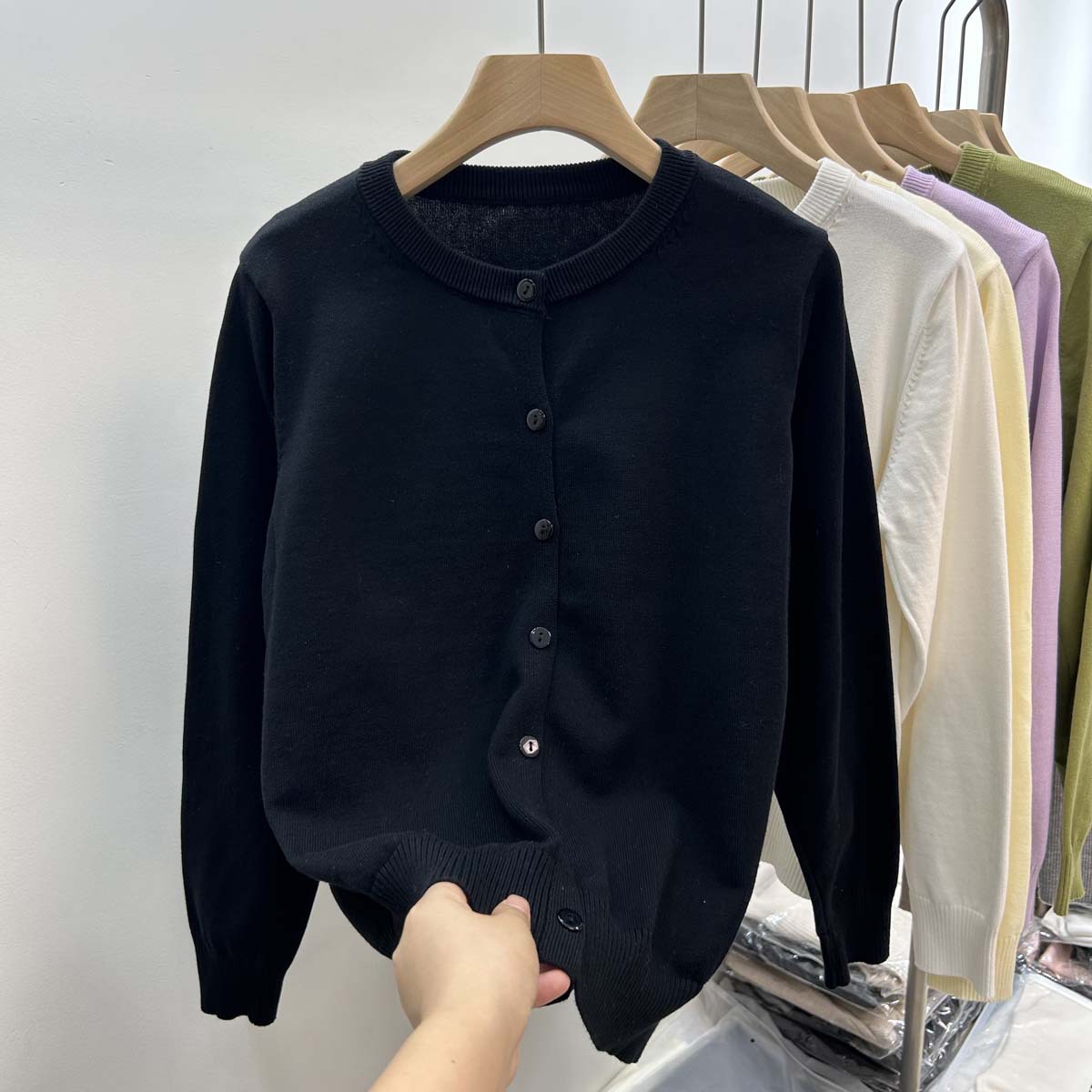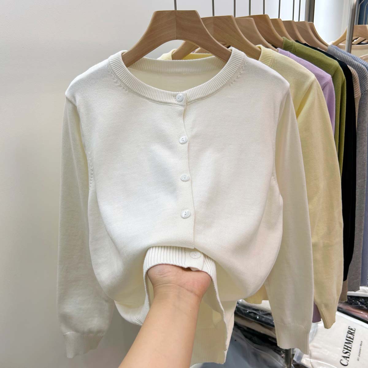 없음 100 모든 봄과 가을 니트웨어 여성 카디건 라운드 넥 외부 2024 올 매치 코트 스웨터스토어 가기