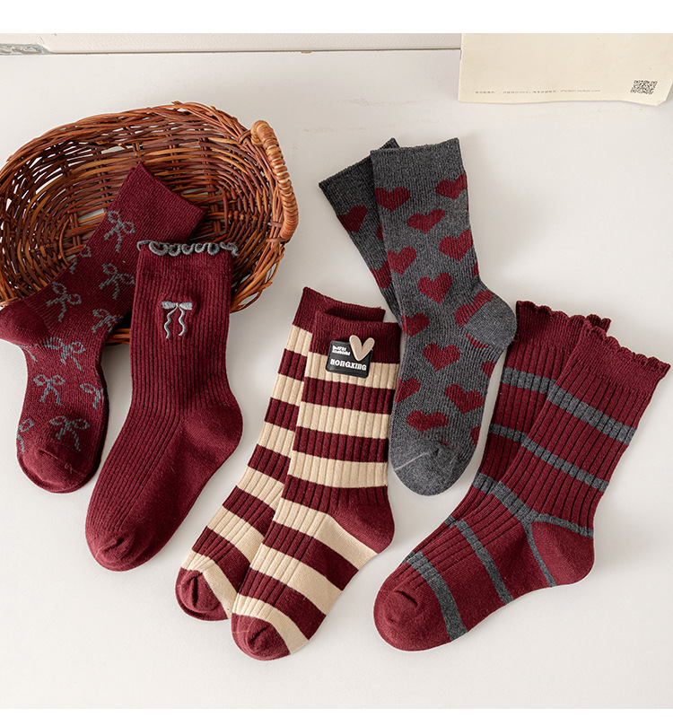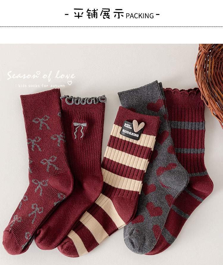 소녀 양말 가을과 겨울 레이스 공주 스타킹 어린이 한국식 인 Ankora 붉은 활 스타킹