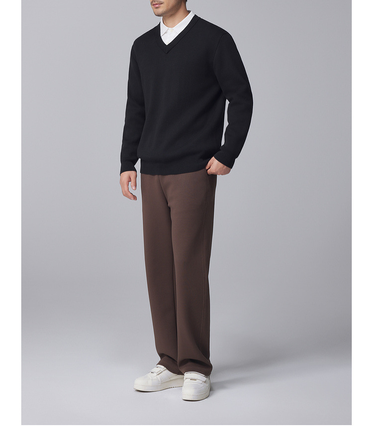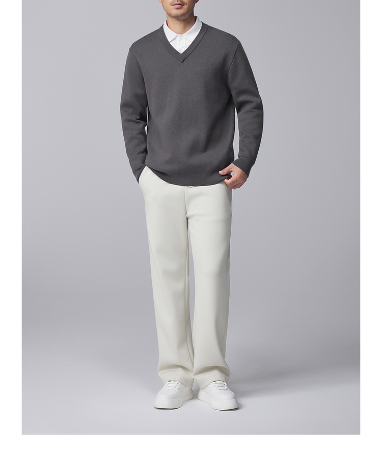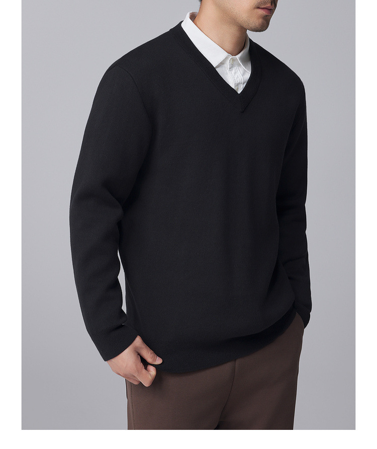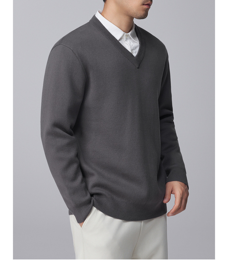 Mo Maike 남자 간단한 솔리드 컬러 V 넥 남자 니트 2024 가을과 겨울 새로운 느슨한 스웨터 남자 20803