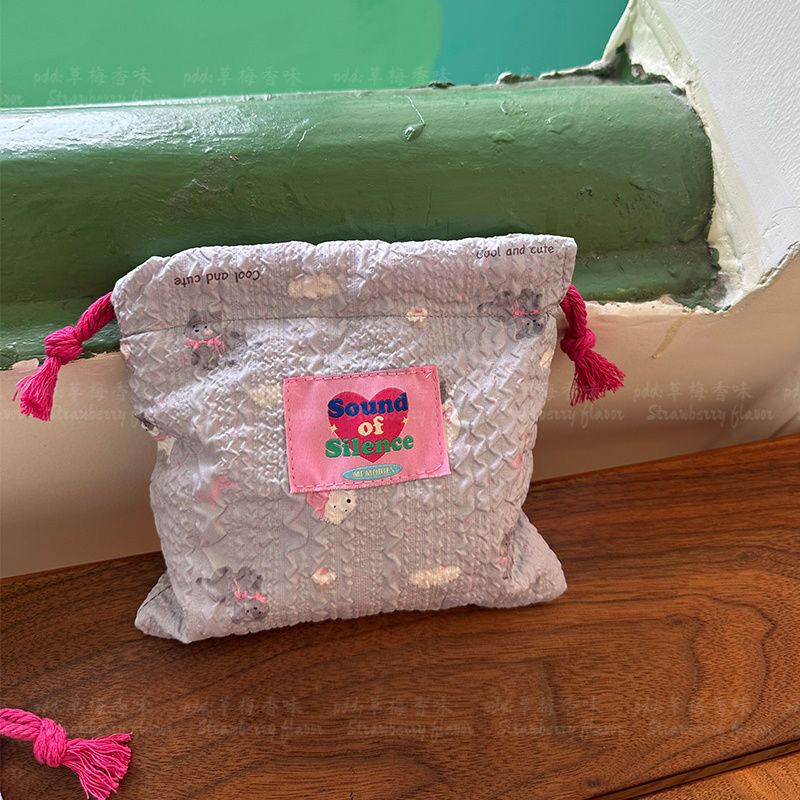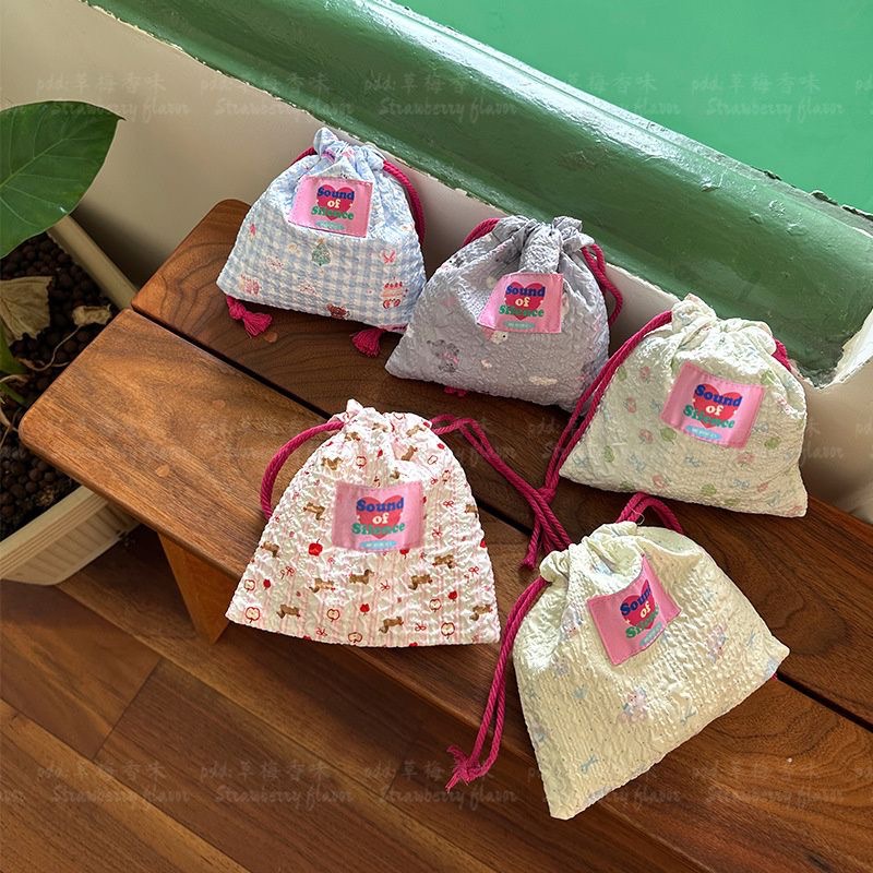 Ins 한국어 스타일 귀여운 만화 인쇄 된 거품 끈 보관 가방 휴대용 작은 항목 가방 구성 가방