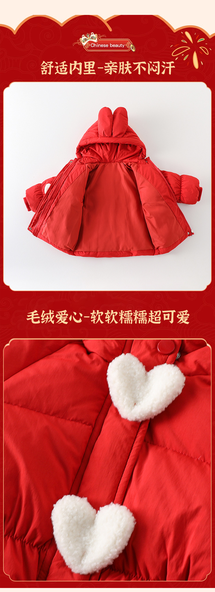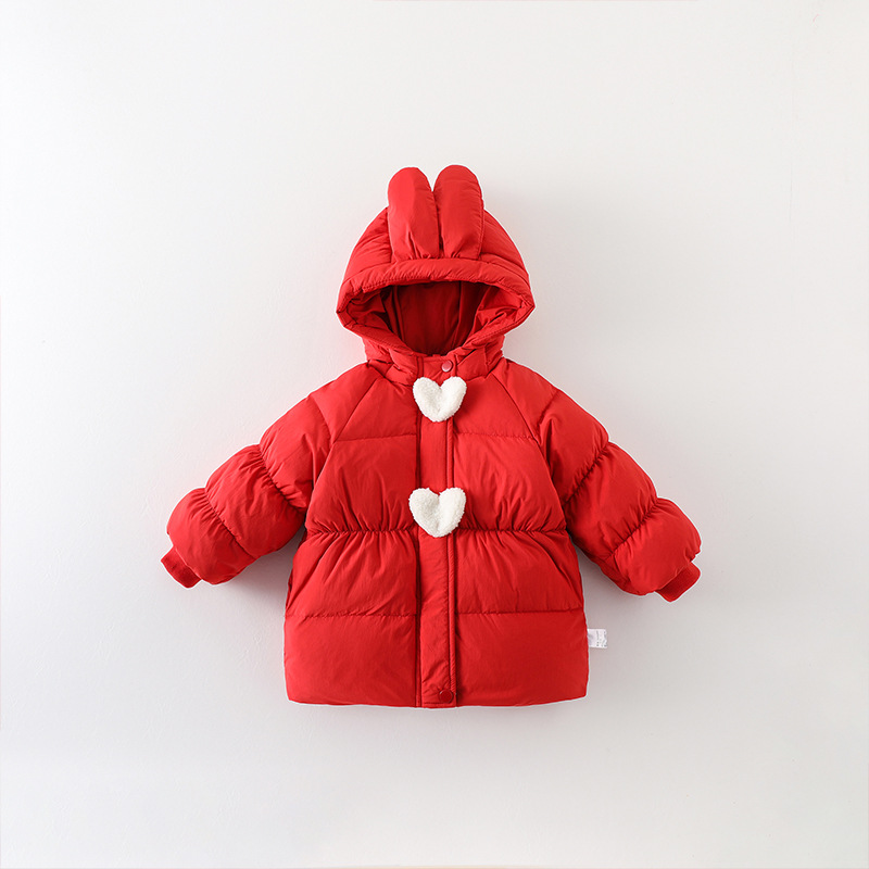 아기 다운 재킷 겨울 소녀 아기 웨스턴 스타일 두꺼운 따뜻한 레드 중간 길이 다운 재킷 카테고리 A