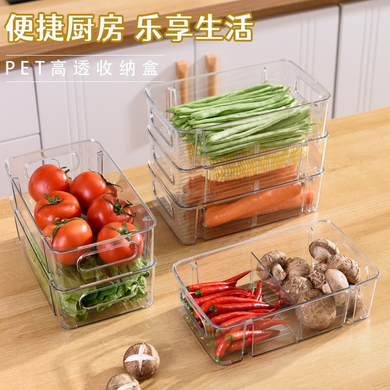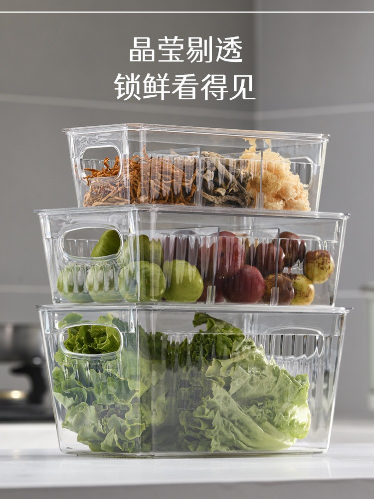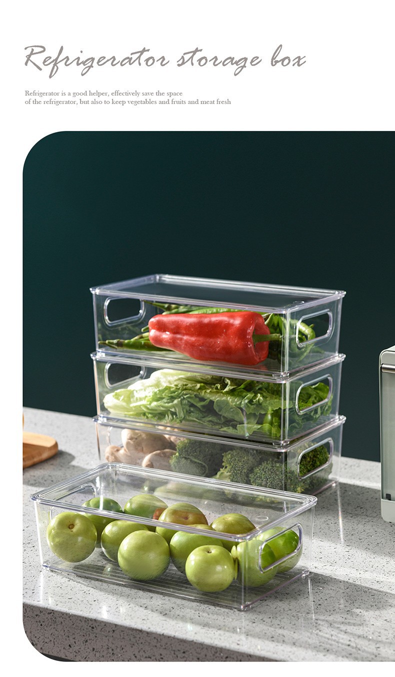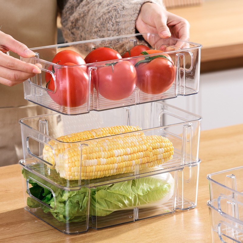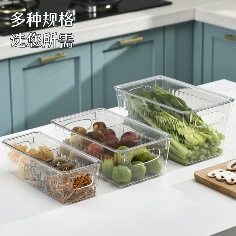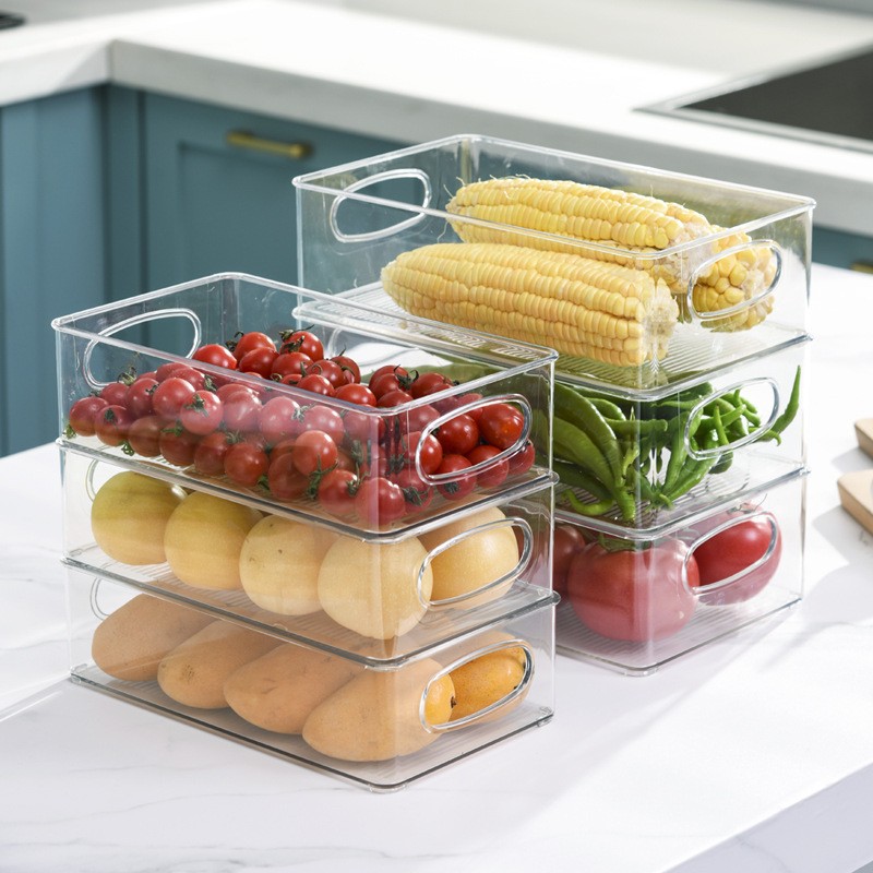 국경 간 뜨거운 판매 쌓을 수있는 냉장고 저장 상자 두꺼운 플라스틱 투명 냉동고 상자 신선한 보관 상자 주방 마감 상자