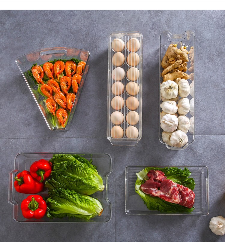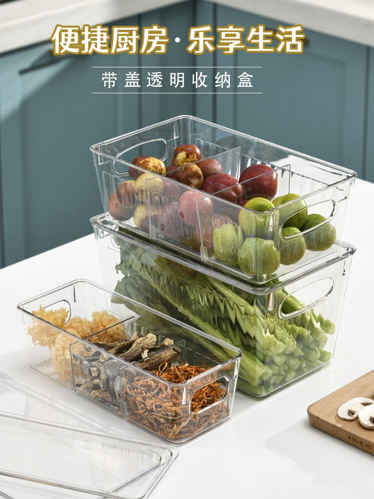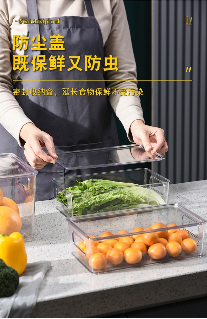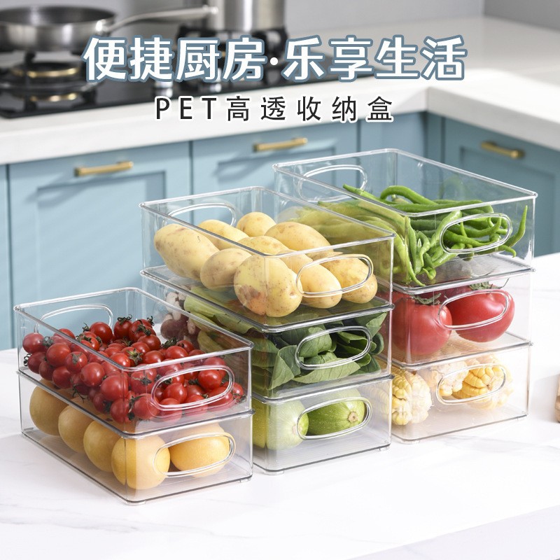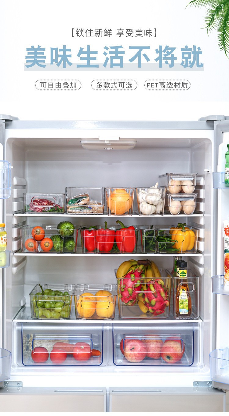 국경 간 뜨거운 판매 쌓을 수있는 냉장고 저장 상자 두꺼운 플라스틱 투명 냉동고 상자 신선한 보관 상자 주방 마감 상자