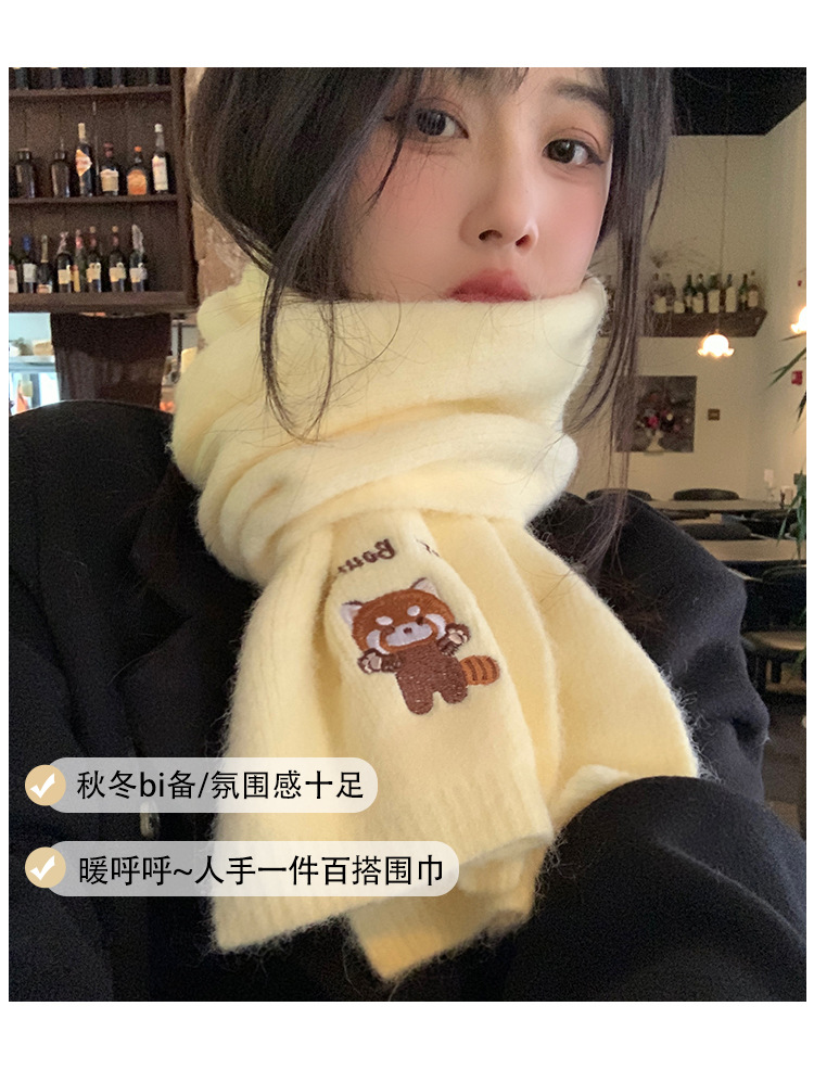 귀여운 너구리 자수 양모 스카프 여성의 가을과 겨울 학생 커플 패션 올 매치 따뜻한 방한 니트 스카프