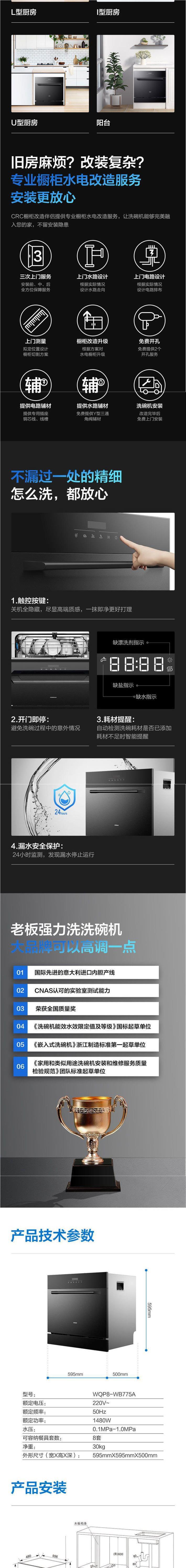 Boss WB77 식기세척기 살균 및 건조 8세트 가정용 소형 전자동 내장형 식기세척기스토어 가기