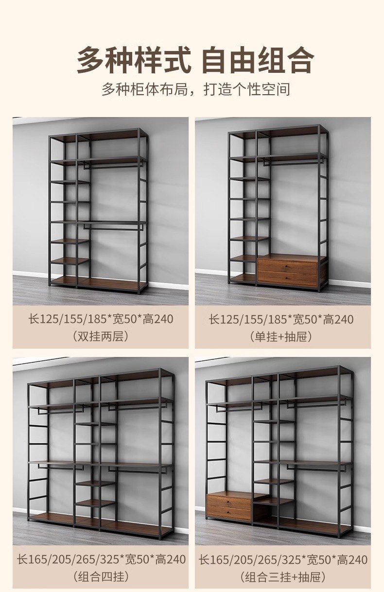 • 이중 서랍 단일 걸이 + 이중 걸이 + 수납 선반 조합 길이 165 너비 50 높이 240