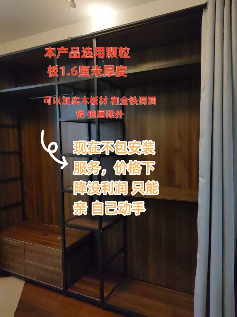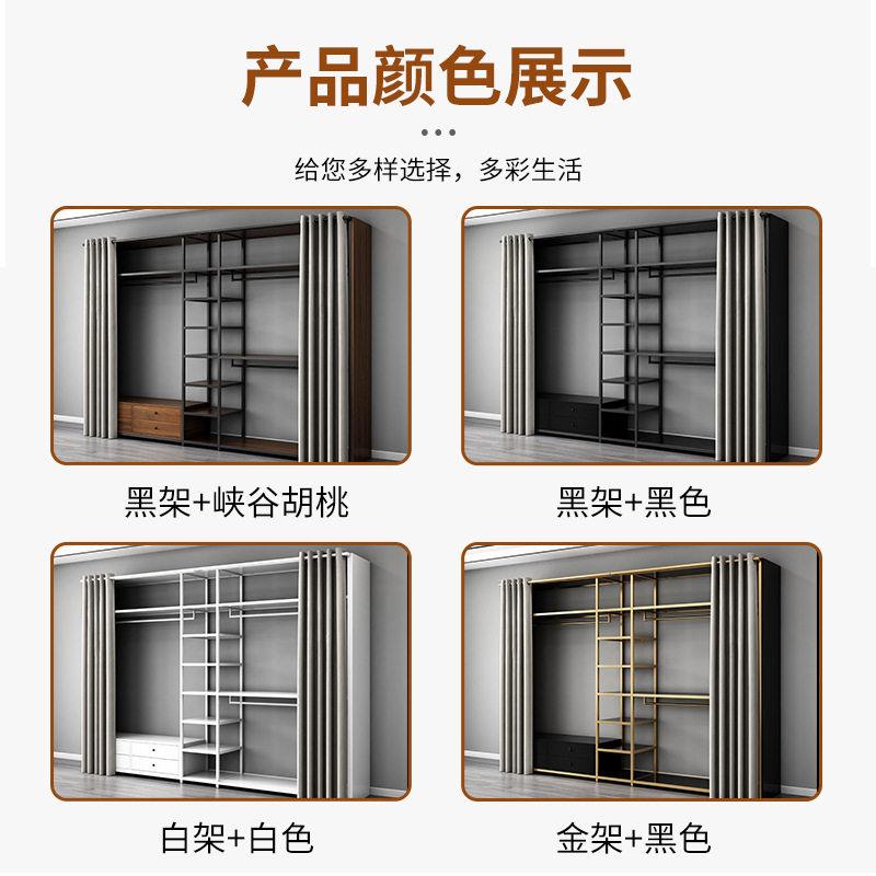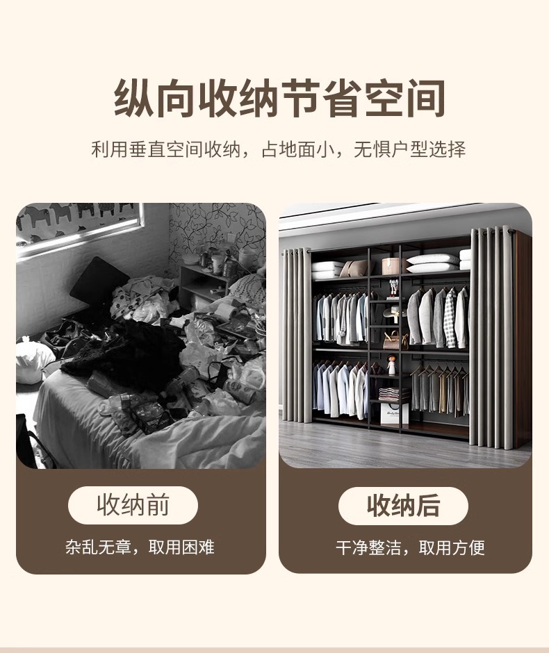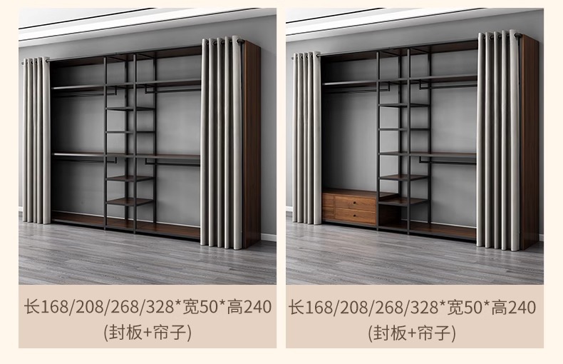 • 이중 서랍 단일 걸이 + 수납 선반 + 이중 걸이 조합 길이 208 너비 50 높이 240 [측면 패널 + 커튼 포함]