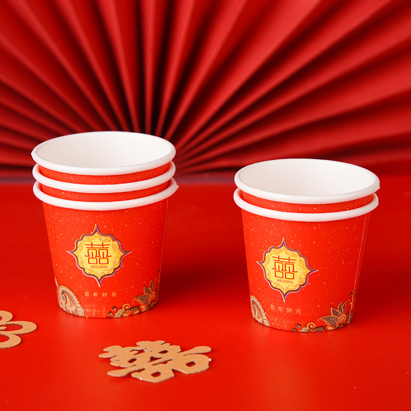 HHXM178 일회용 웨딩 토스트 컵 스몰 사이즈 웨딩 미니 종이 컵 레드 두꺼운 토스트 컵 축제