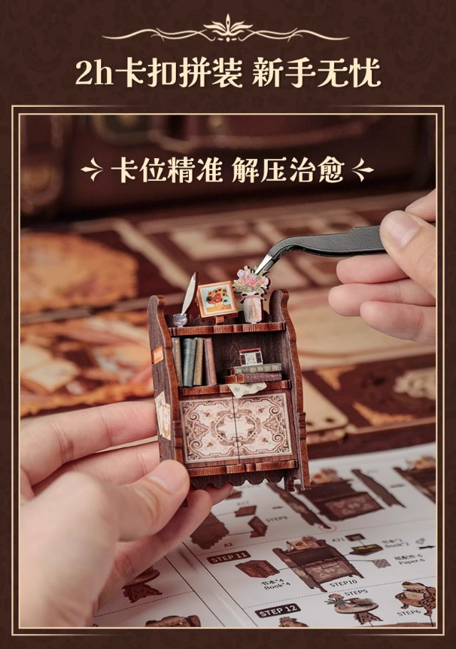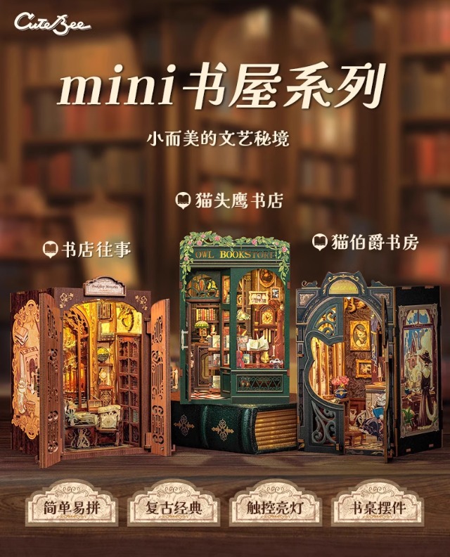 큐트비 손오공 전설 입체 조립 책꽂이 수제 DIY 미니어처 미니 하우스 모델 창의적인 장난감 여성용스토어 가기