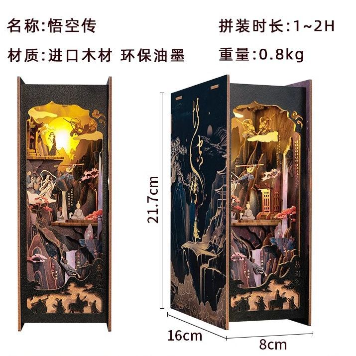 큐트비 손오공 전설 입체 조립 책꽂이 수제 DIY 미니어처 미니 하우스 모델 창의적인 장난감 여성용