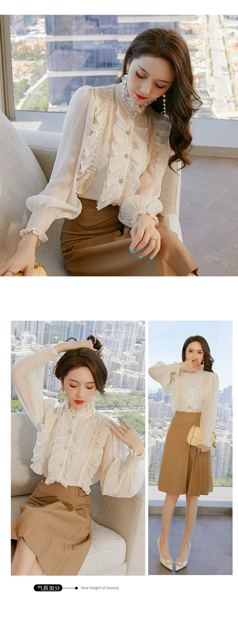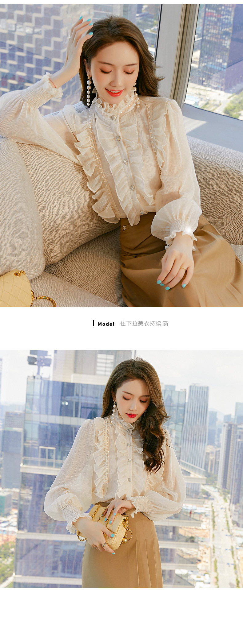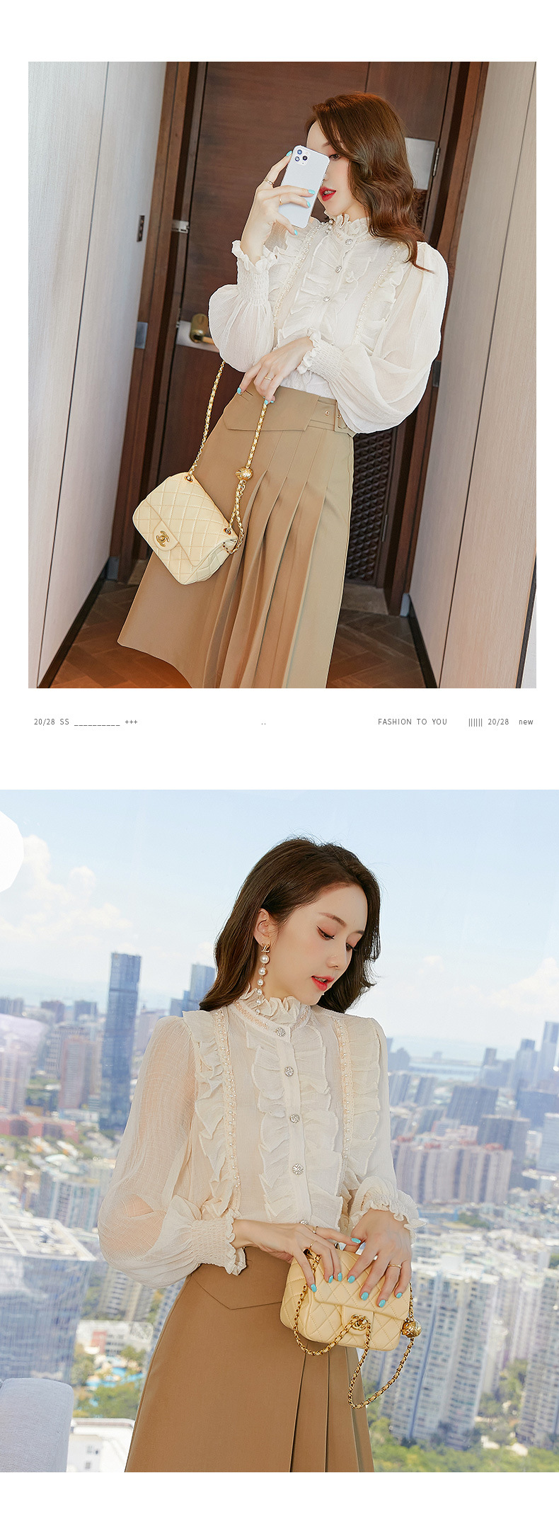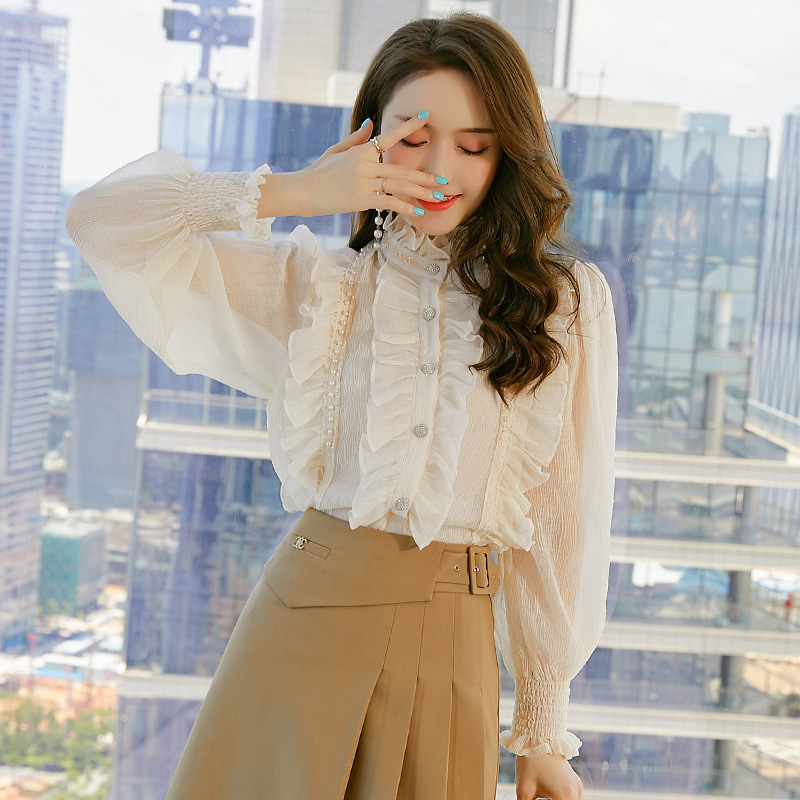 2025 봄 새로운 프랑스 스타일 디자인 센스 틈새 올 매치 쉬폰 셔츠 여성용 Auricularia 러플 터틀넥 셔츠 탑스토어 가기