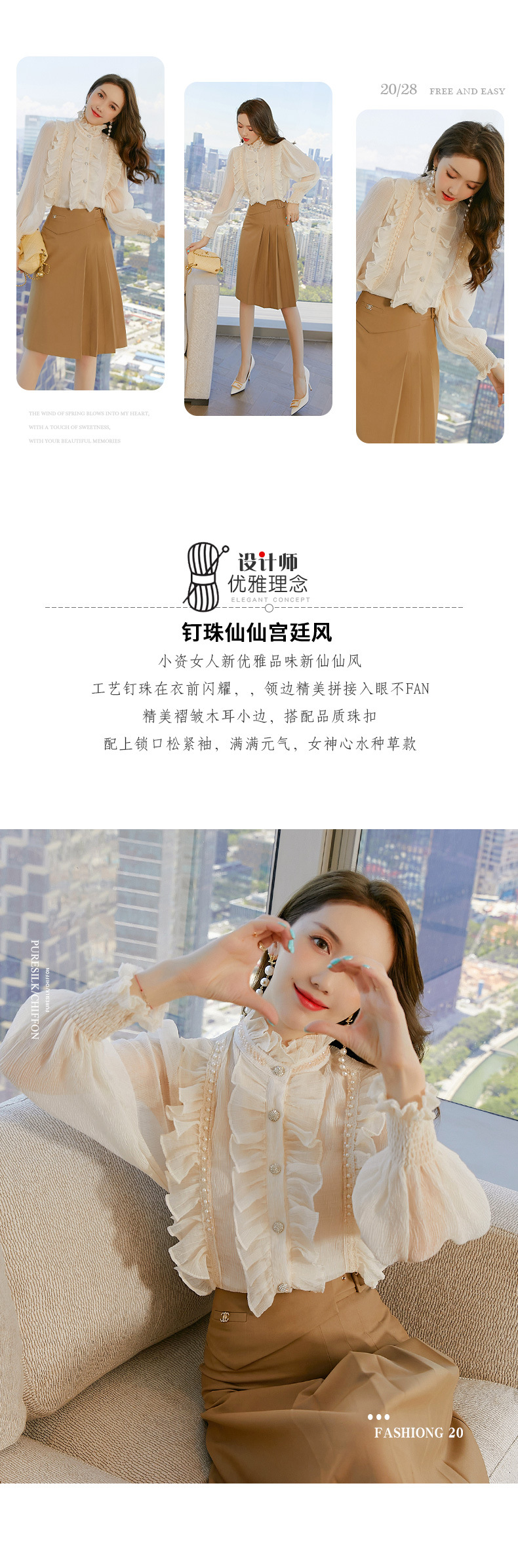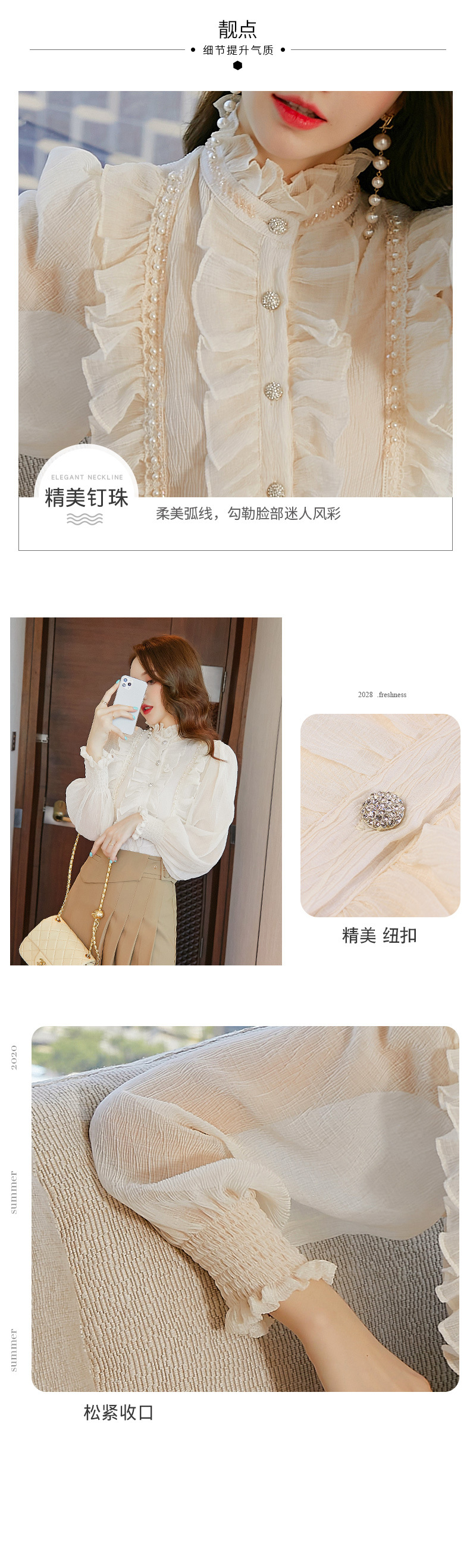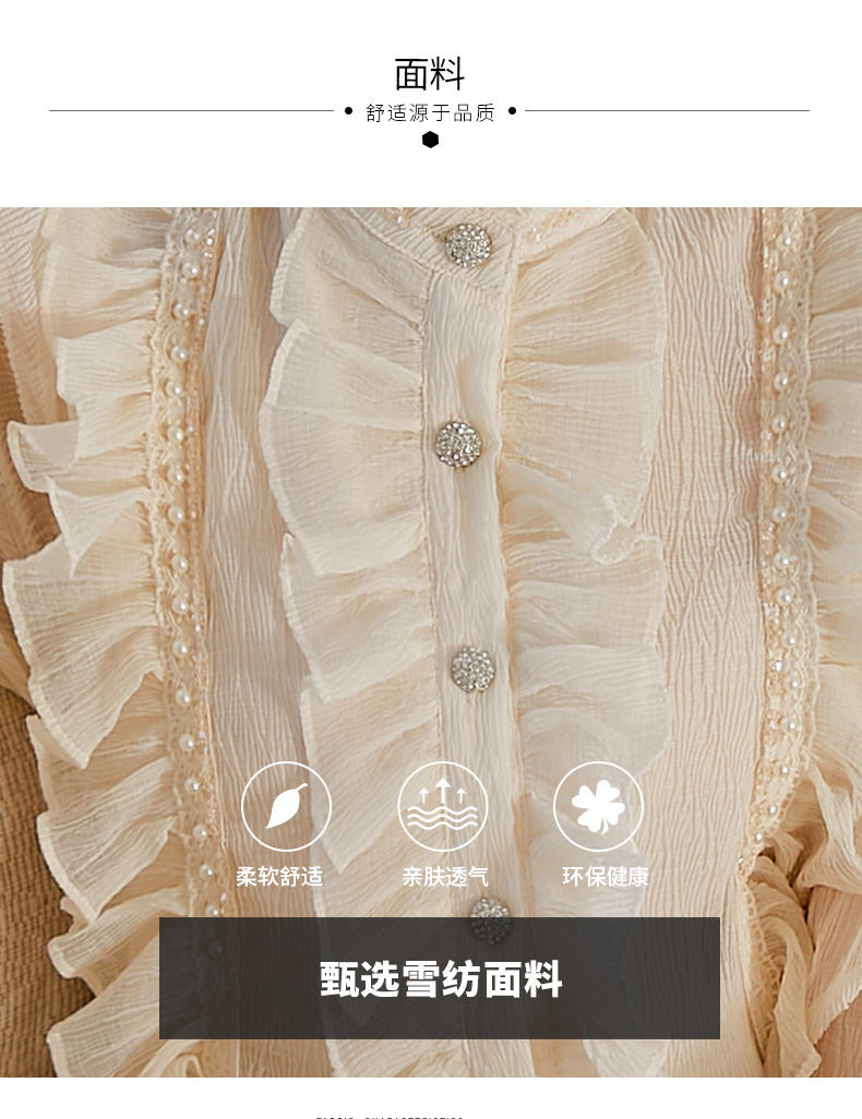 2025 봄 새로운 프랑스 스타일 디자인 센스 틈새 올 매치 쉬폰 셔츠 여성용 Auricularia 러플 터틀넥 셔츠 탑스토어 가기