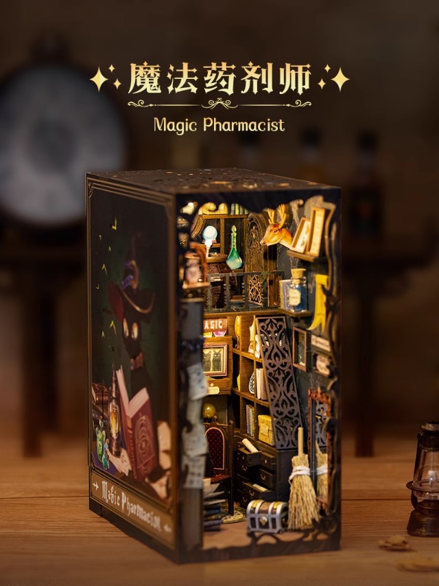 CuteBee Mulan은 3 차원 조립 된 책 스탠드 수제 DIY 미니어처 미니 캐빈 모델 창조적 인 장난감 선물을 말했다스토어 가기