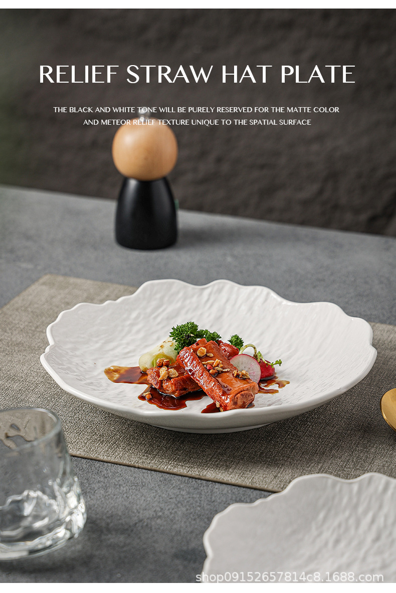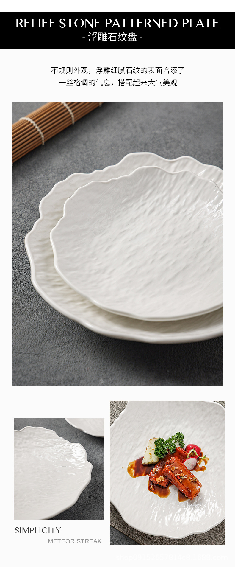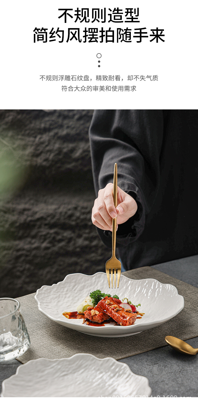 매트 록 그레인 플레이트 크리 에이 티브 라운드 대형 플레이트 웨스턴 푸드 플레이트 파 와트 호텔 상업용 세라믹 가정용 식기 플레이트