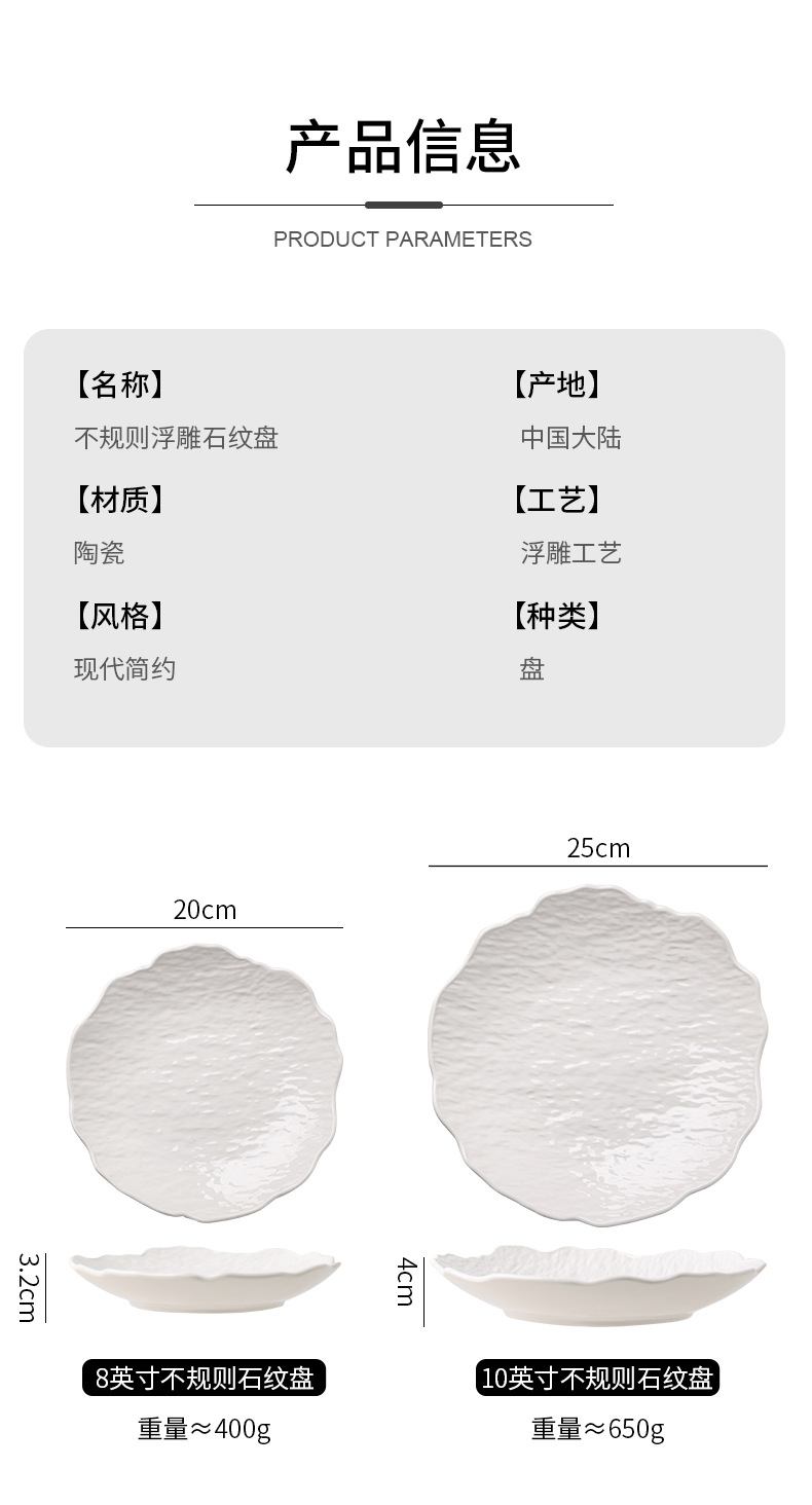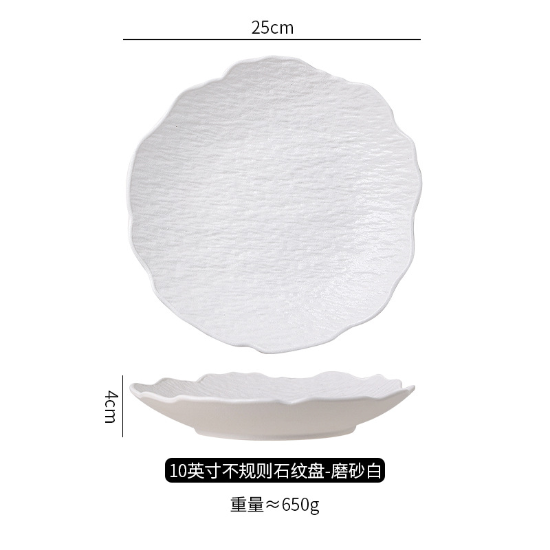 매트 록 그레인 플레이트 크리 에이 티브 라운드 대형 플레이트 웨스턴 푸드 플레이트 파 와트 호텔 상업용 세라믹 가정용 식기 플레이트스토어 가기