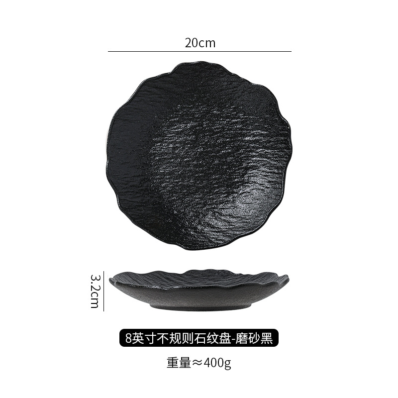 • 8inch 스톤 패턴 불규칙 플레이트 매트 블랙