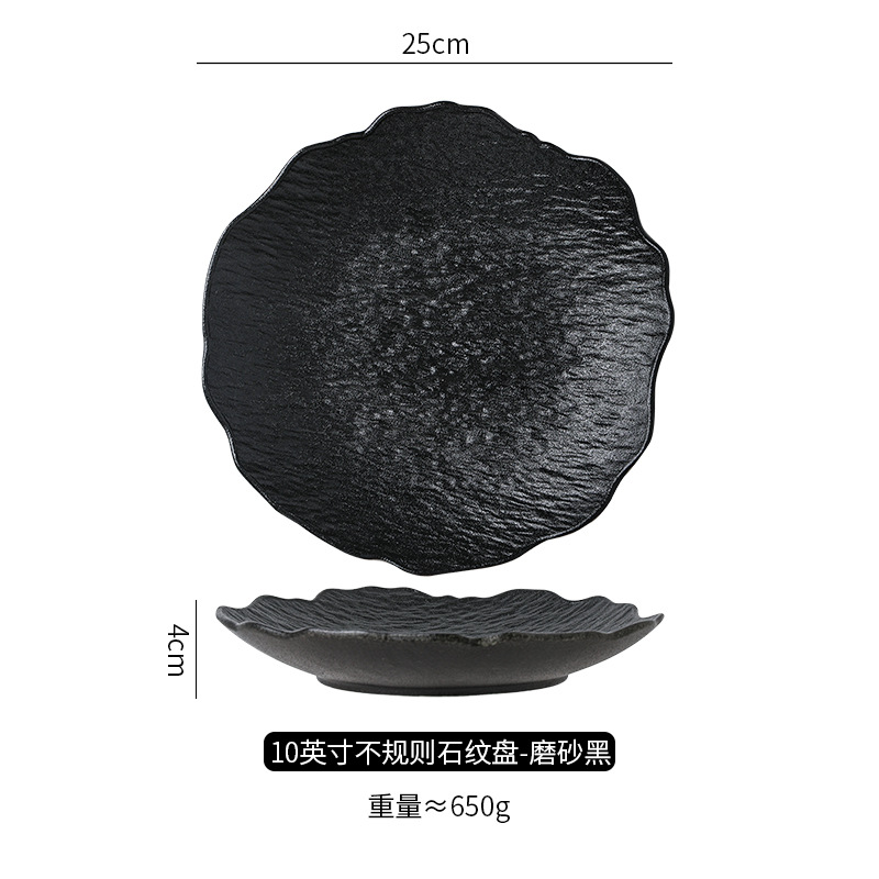 • 10inch 스톤 패턴 불규칙 플레이트 매트 블랙