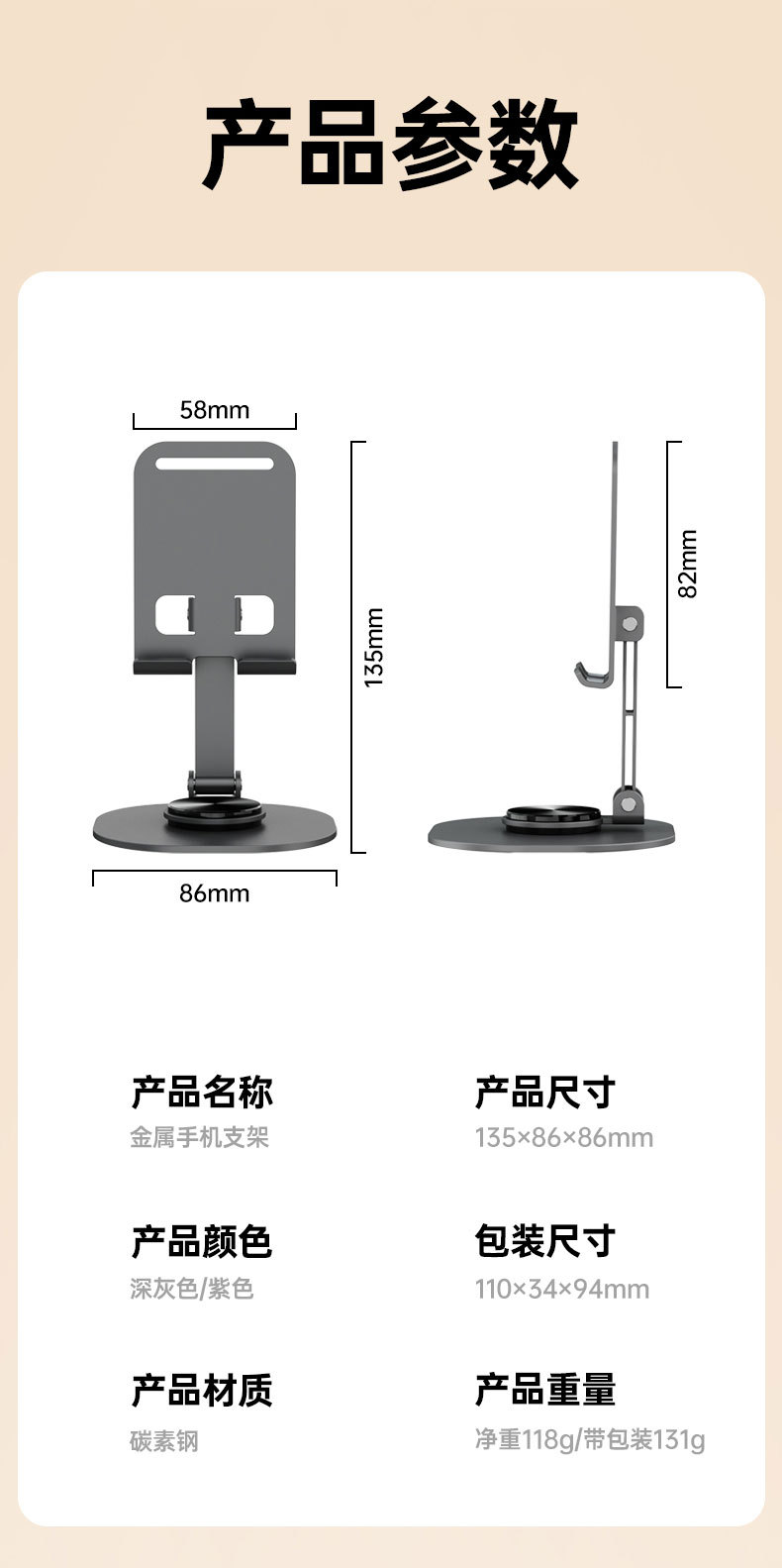 • 스페이스 그레이 [올메탈★360도 회전★휴대폰 및 태블릿용 범용]