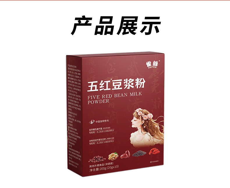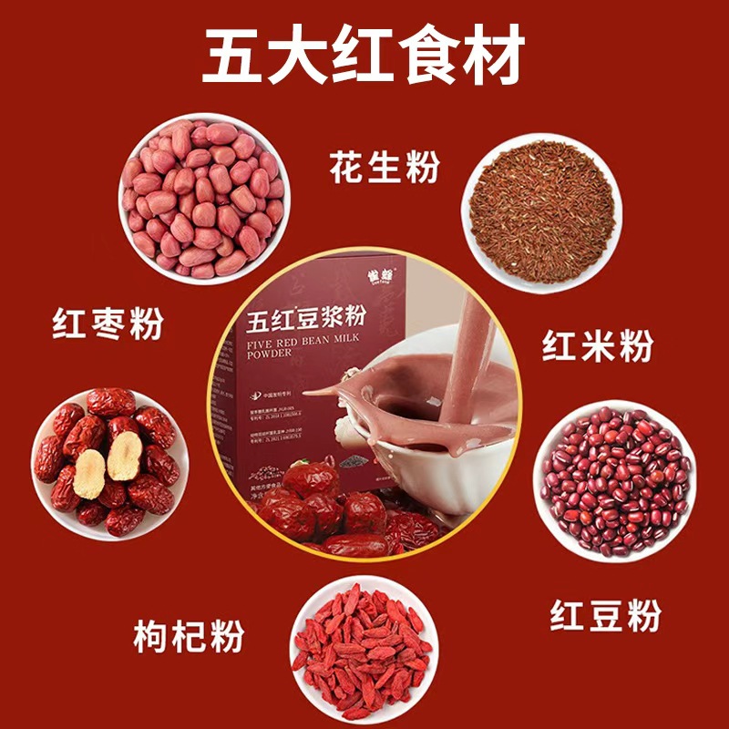 OEM 맞춤형 5가지 붉은 두유분말 식이섬유 인스턴트 두유분말 프로바이오틱스 대추와 구기자 식사대용 두유분말스토어 가기