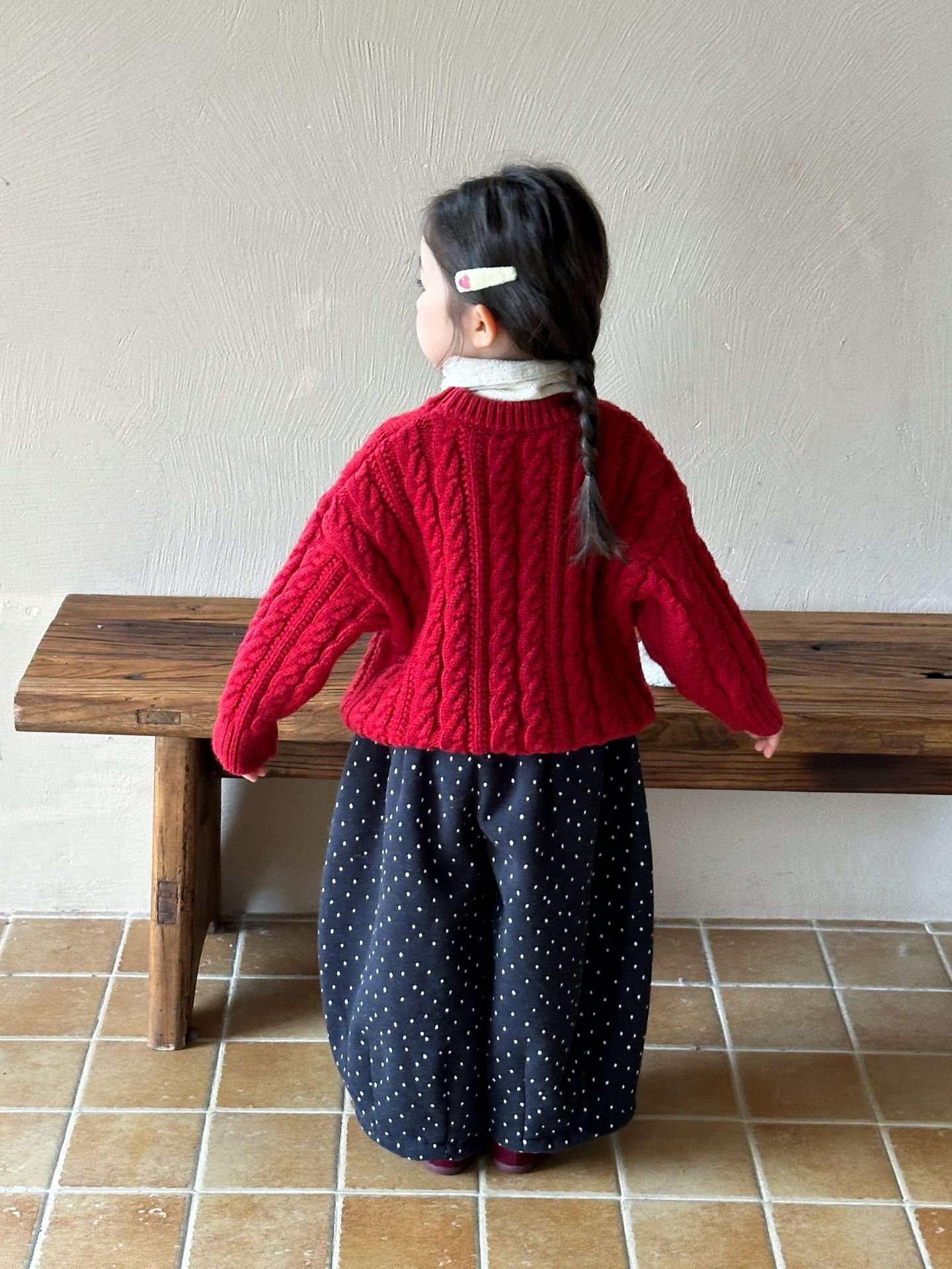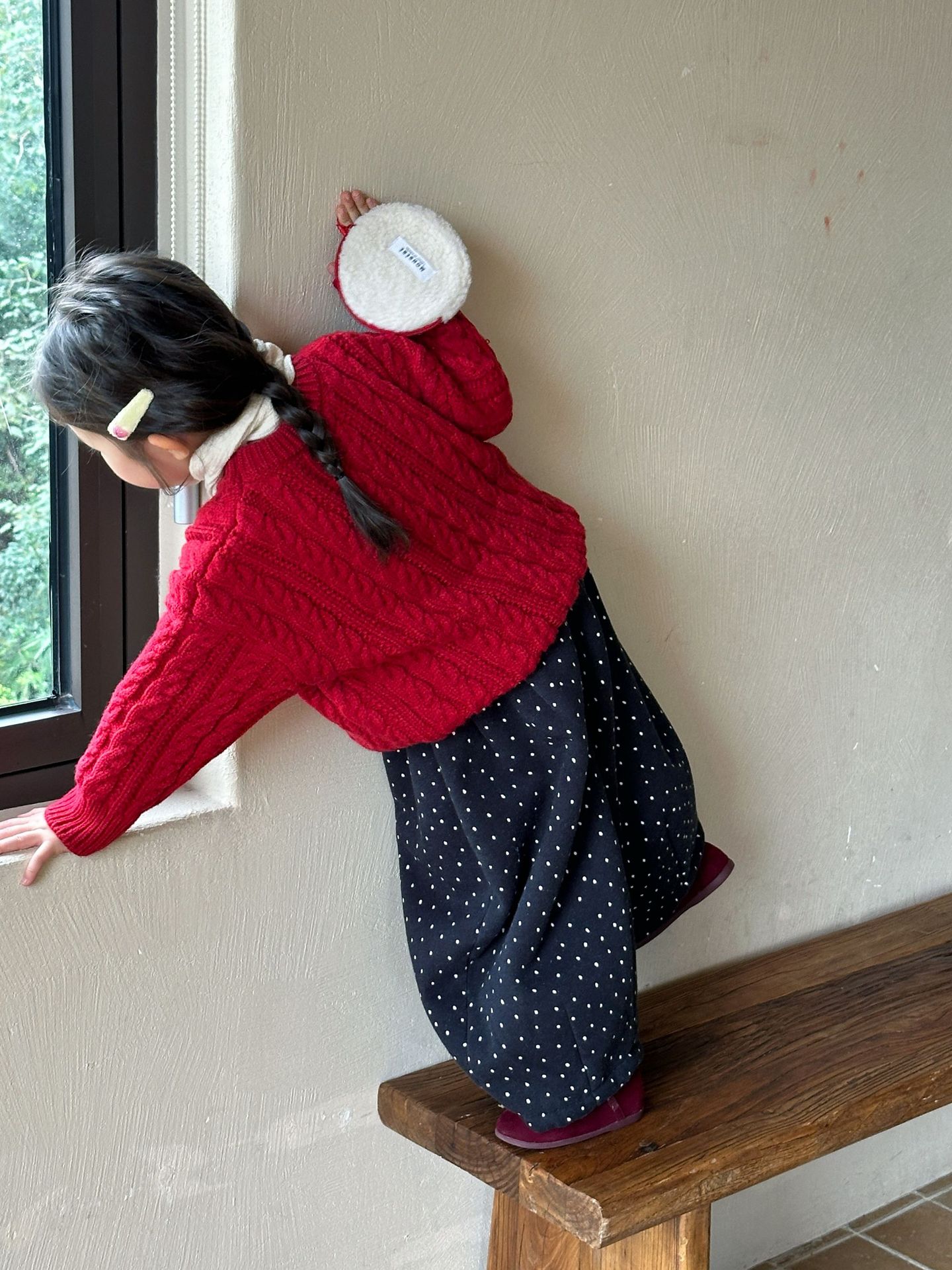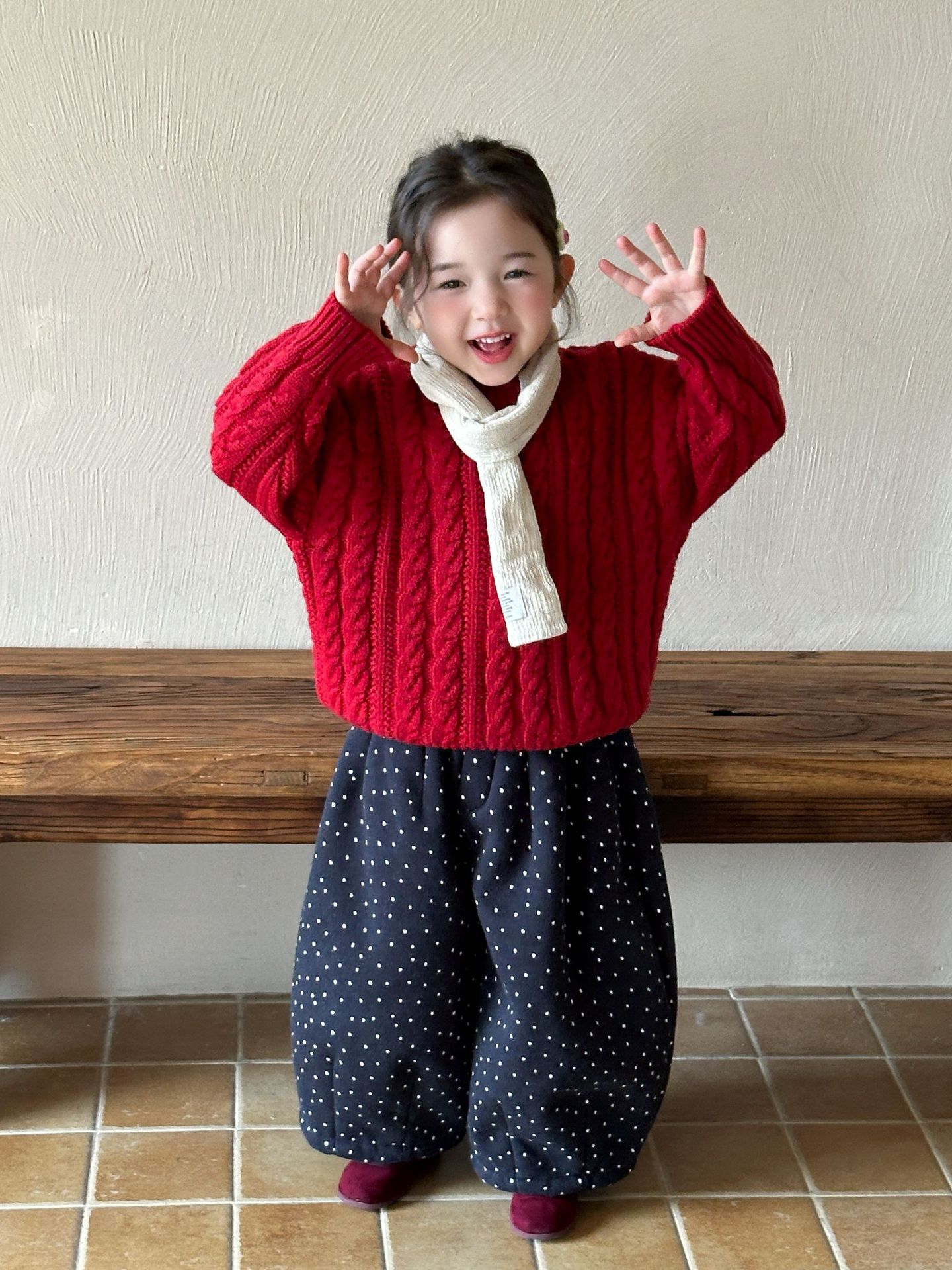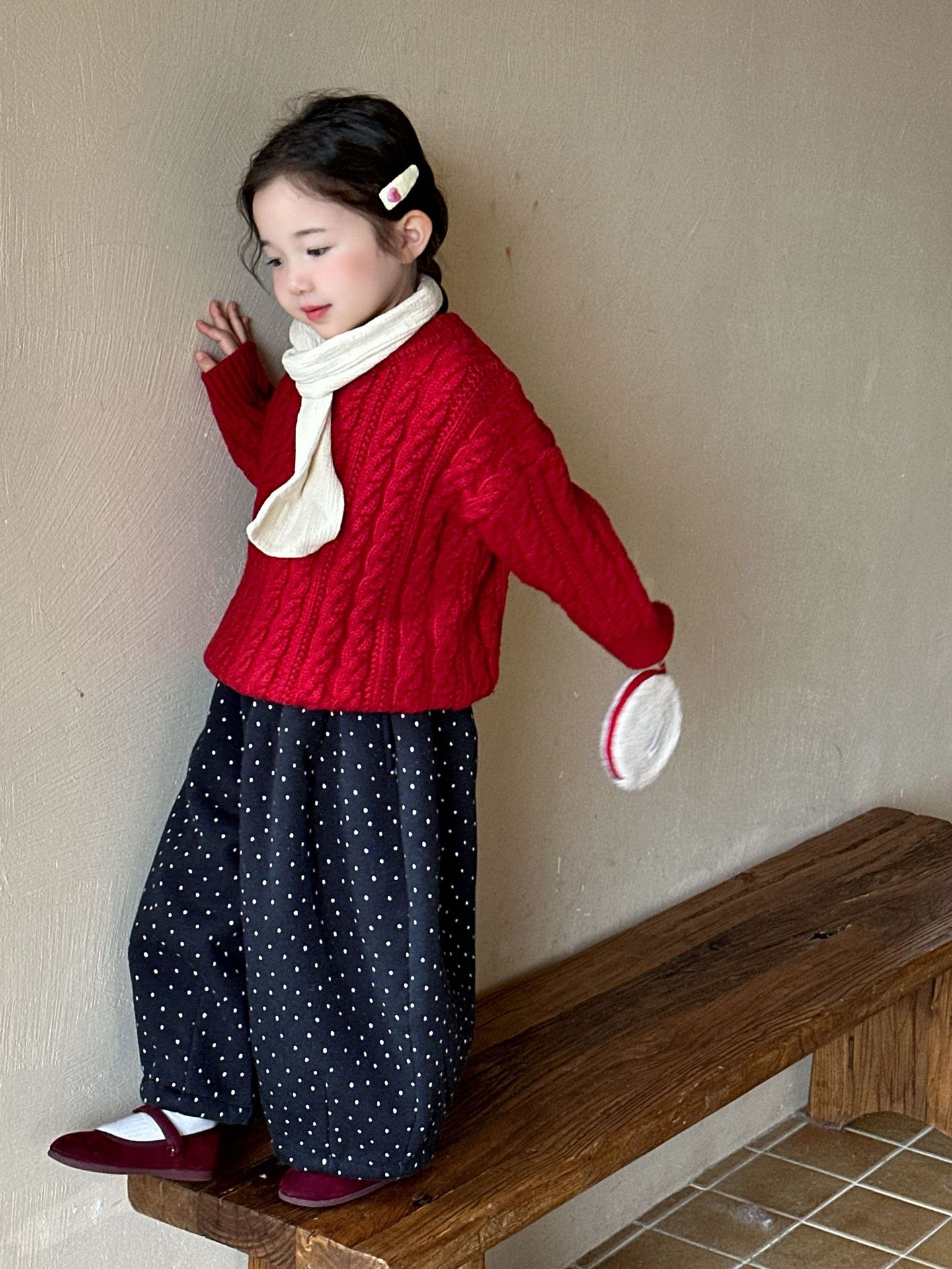 여자 스웨터 2024 겨울 새 어린이 한국 두꺼운 최고 어린이 신년 빨간 니트 스웨터 서양식스토어 가기