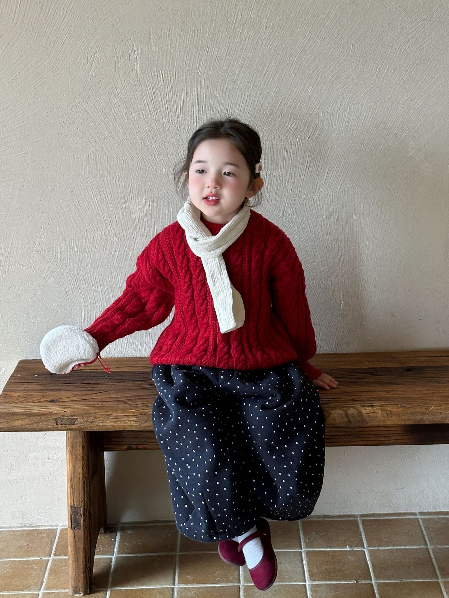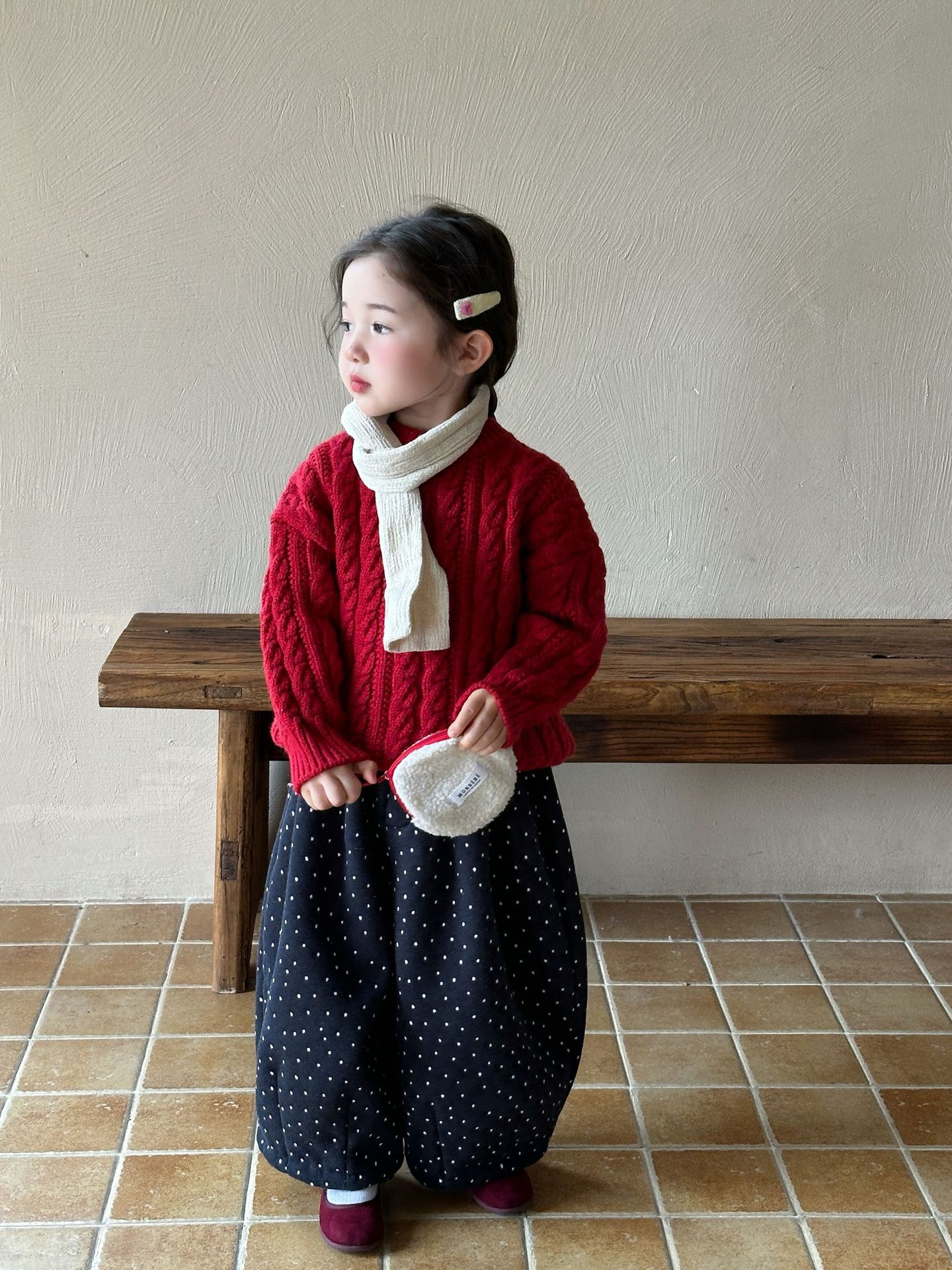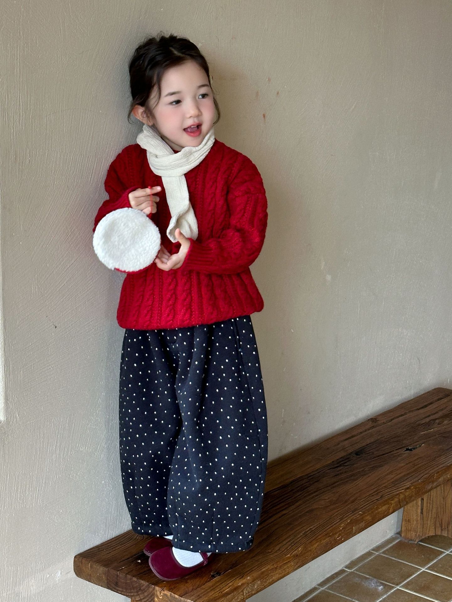 여자 스웨터 2024 겨울 새 어린이 한국 두꺼운 최고 어린이 신년 빨간 니트 스웨터 서양식스토어 가기