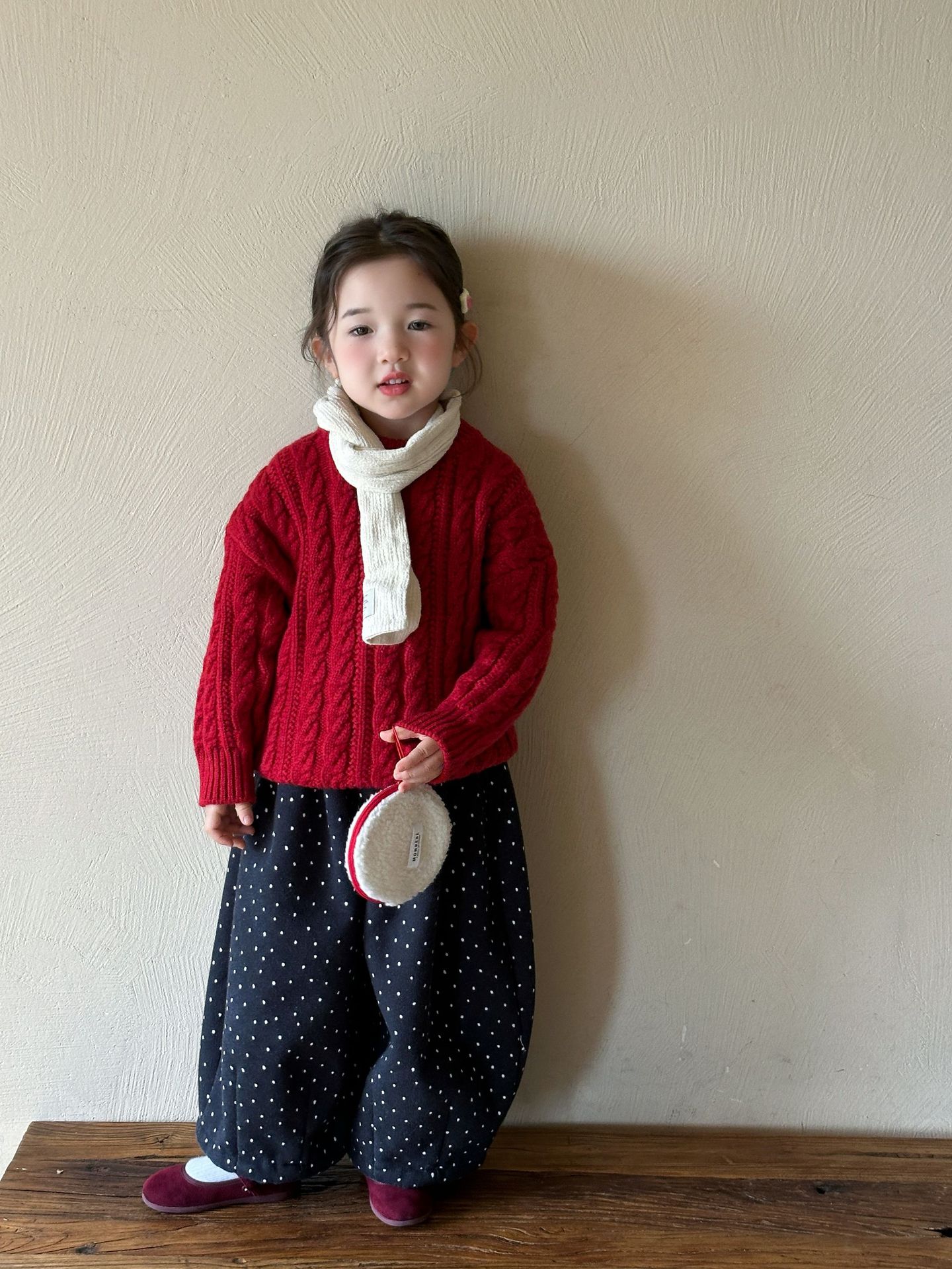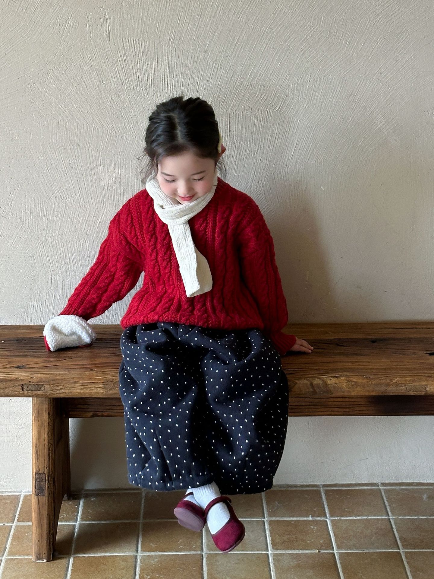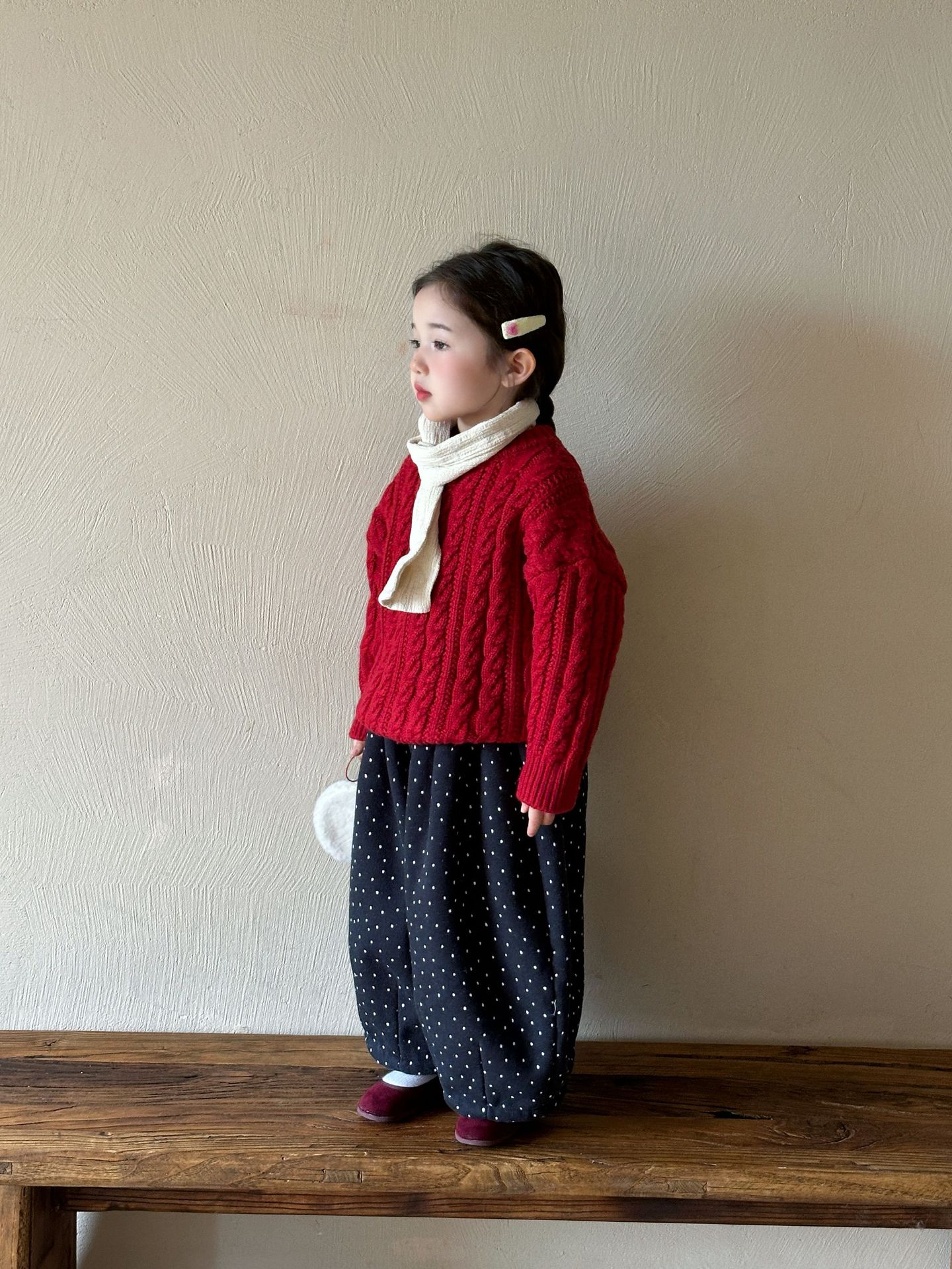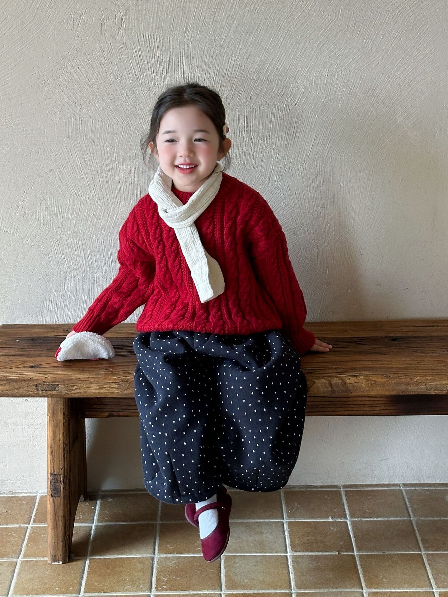 여자 스웨터 2024 겨울 새 어린이 한국 두꺼운 최고 어린이 신년 빨간 니트 스웨터 서양식스토어 가기