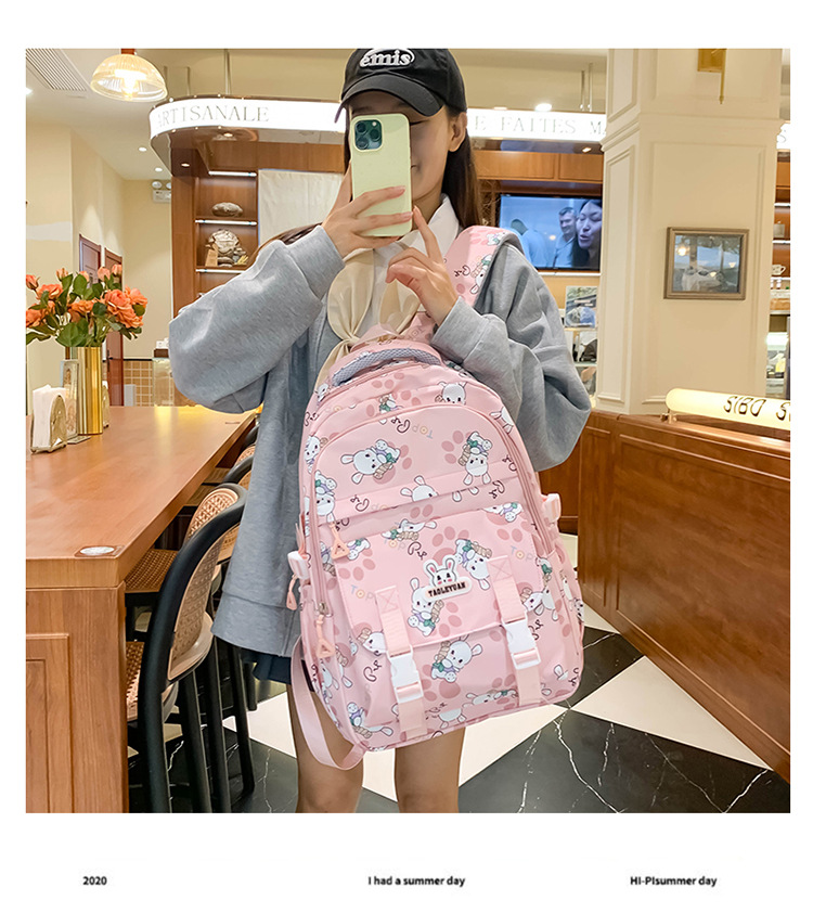 간단한 서양식 낙서 백팩 2024 새로운 서양 스타일 귀여운 대용량 주니어 고등학교 학생 학교 가방스토어 가기
