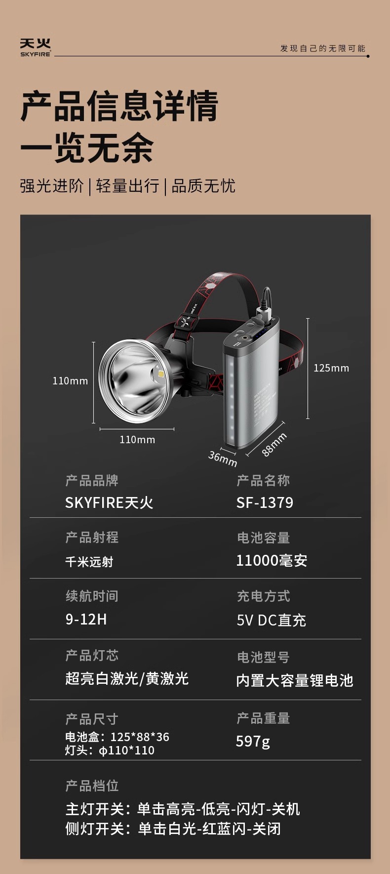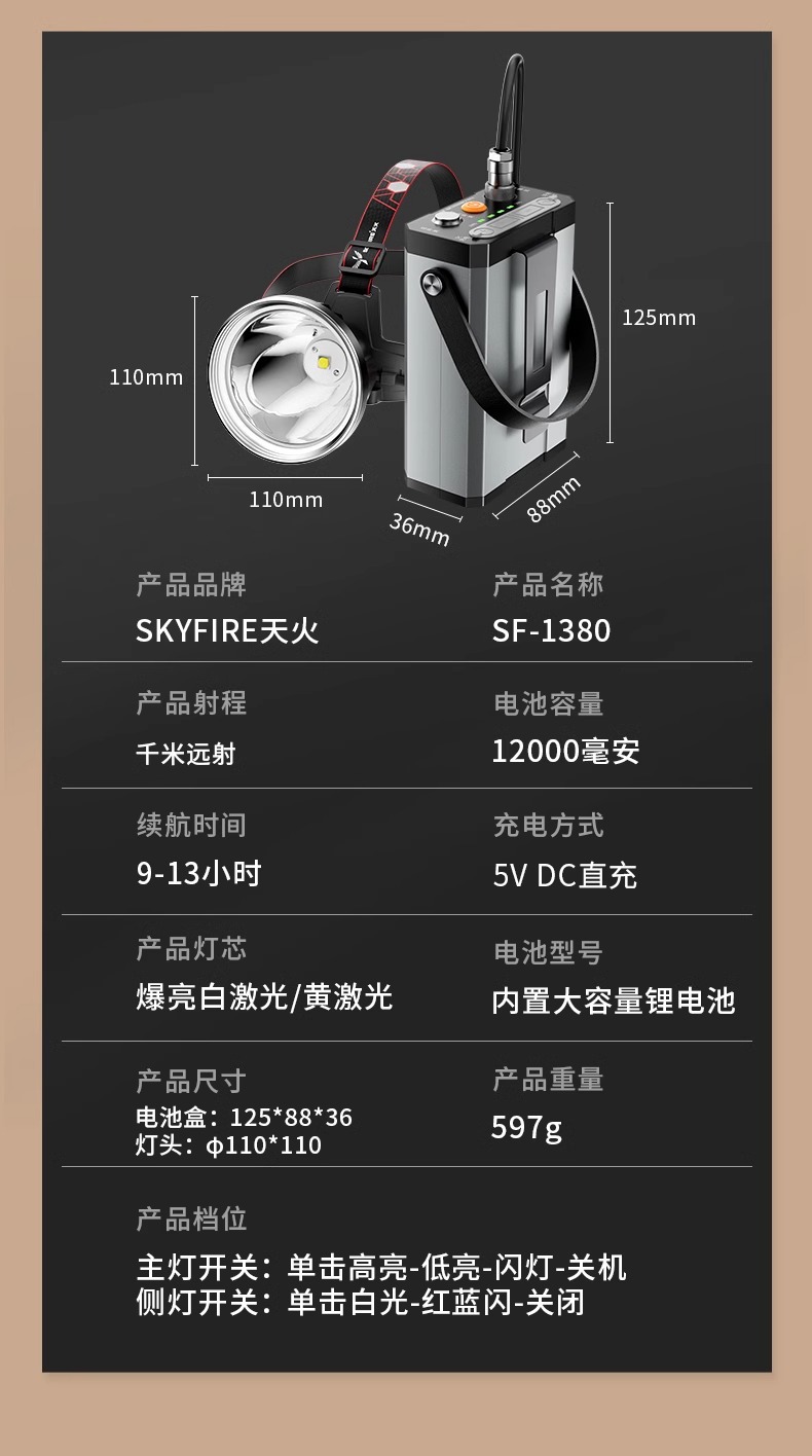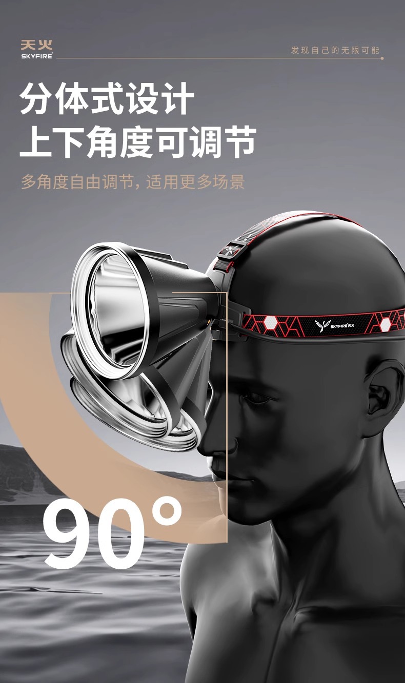 천화 분리형 강력 초고휘도 헤드램프 충전식 광부등 야외용 배터리 헤드 마운트 조명 장시간 사용 가능한 손전등