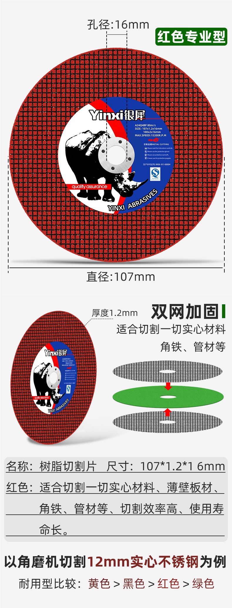 • 100*1.6*20 강화된 절단 철 왕