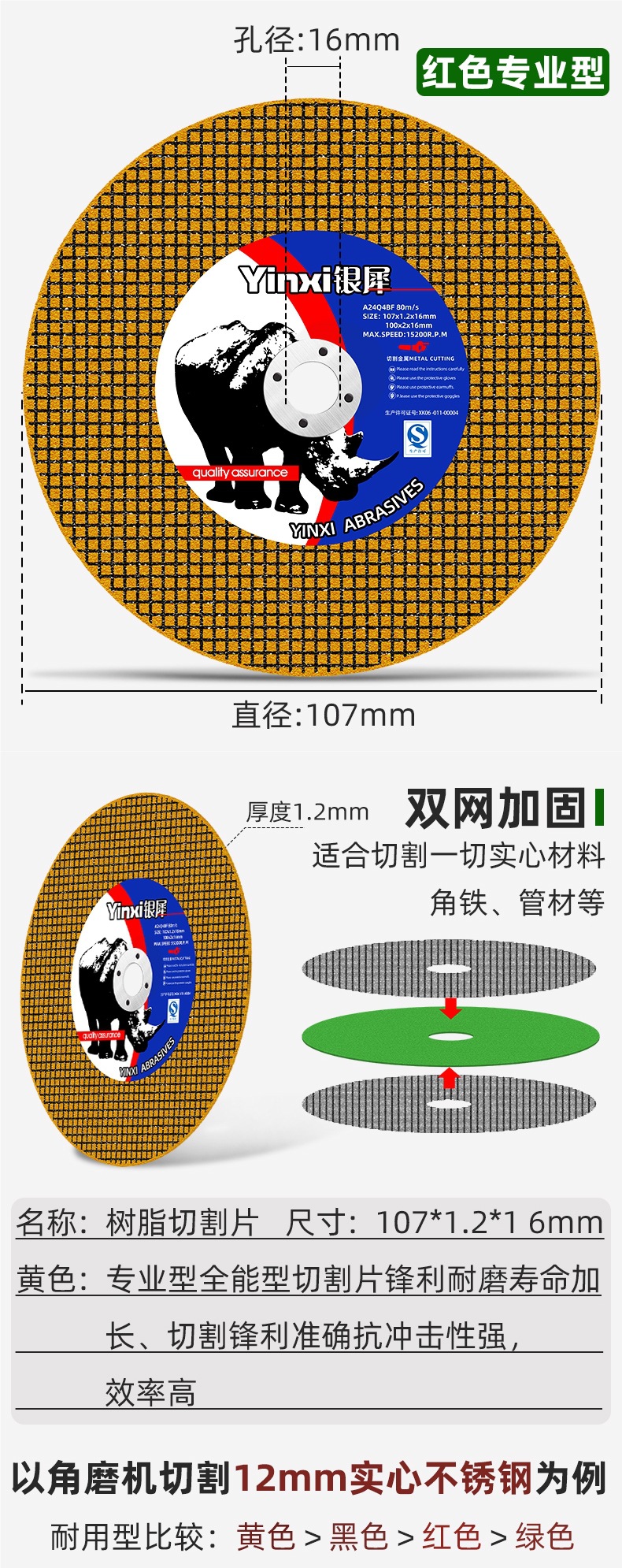• Silver Rhino Gongshi-고품질 노란색 정제 [800개/상자] 앵글 그라인더 포함