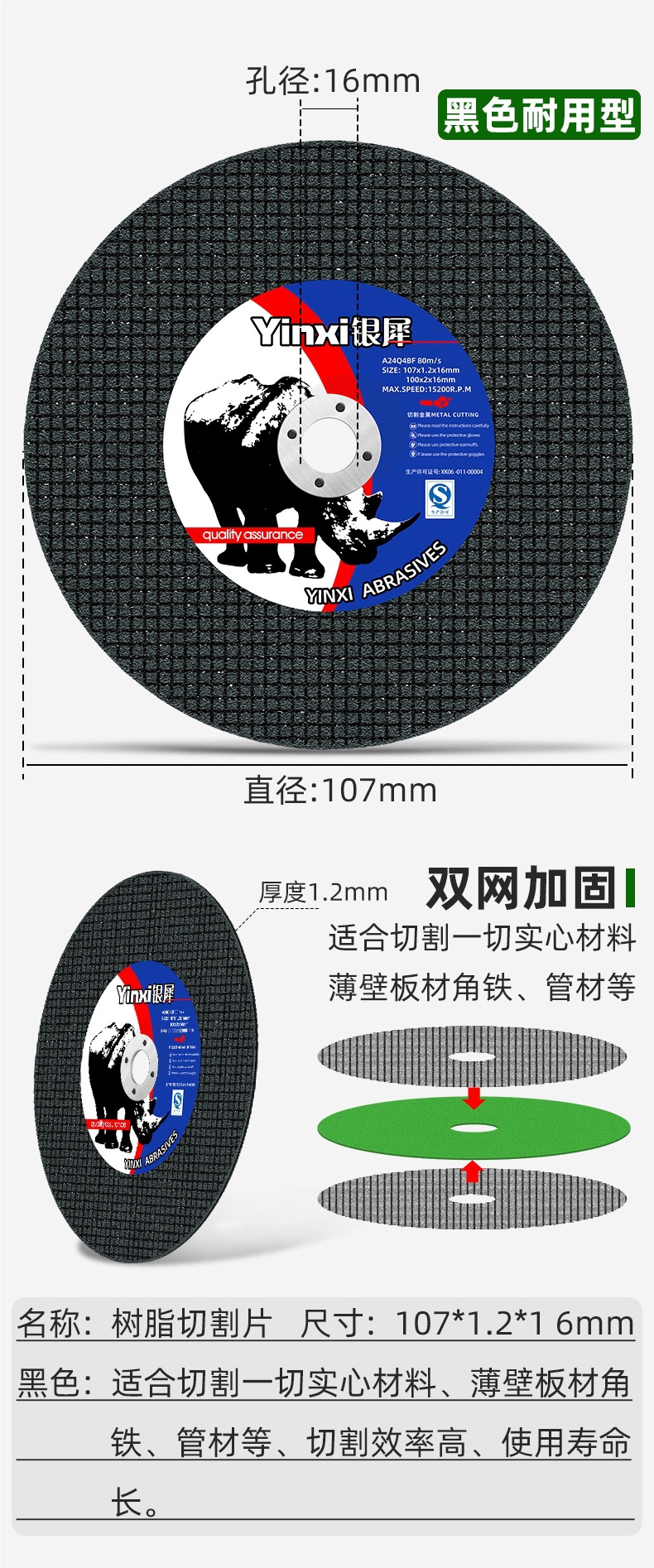 • 실버 코뿔소 • 피크 내구성 검정색 필름 [800개/박스] 앵글 그라인더 포함