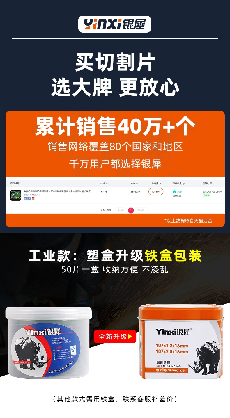 앵글 그라인더 커팅 블레이드 스테인레스 스틸 연삭 휠 블레이드 100 수지 금속 톱 블레이드 Daquan 트랙 모래 휠 연삭 및 절단 철 킹