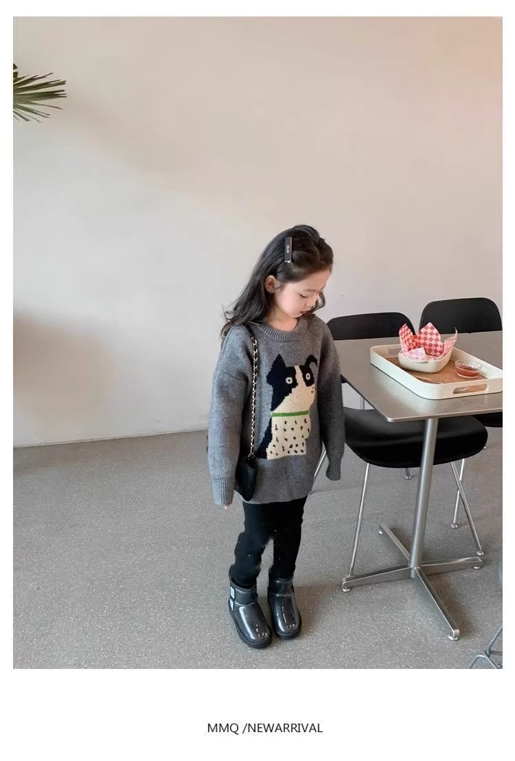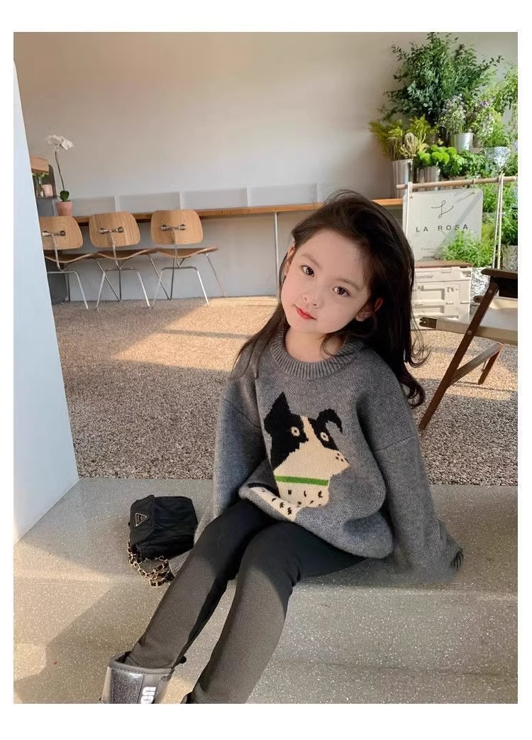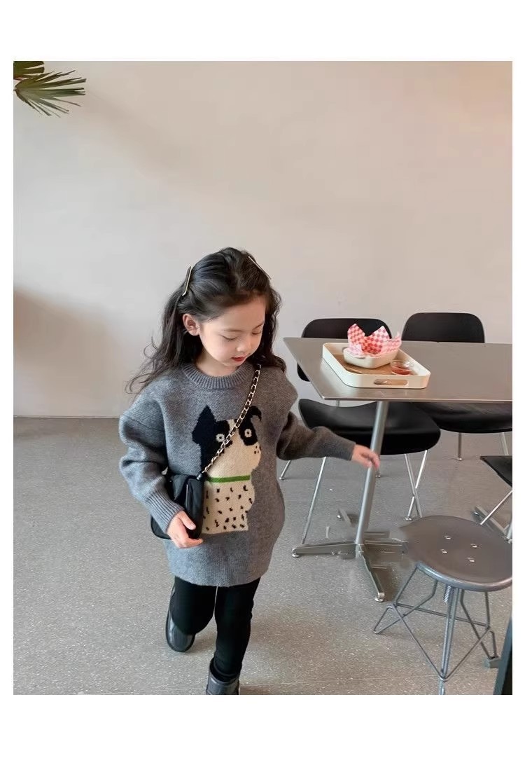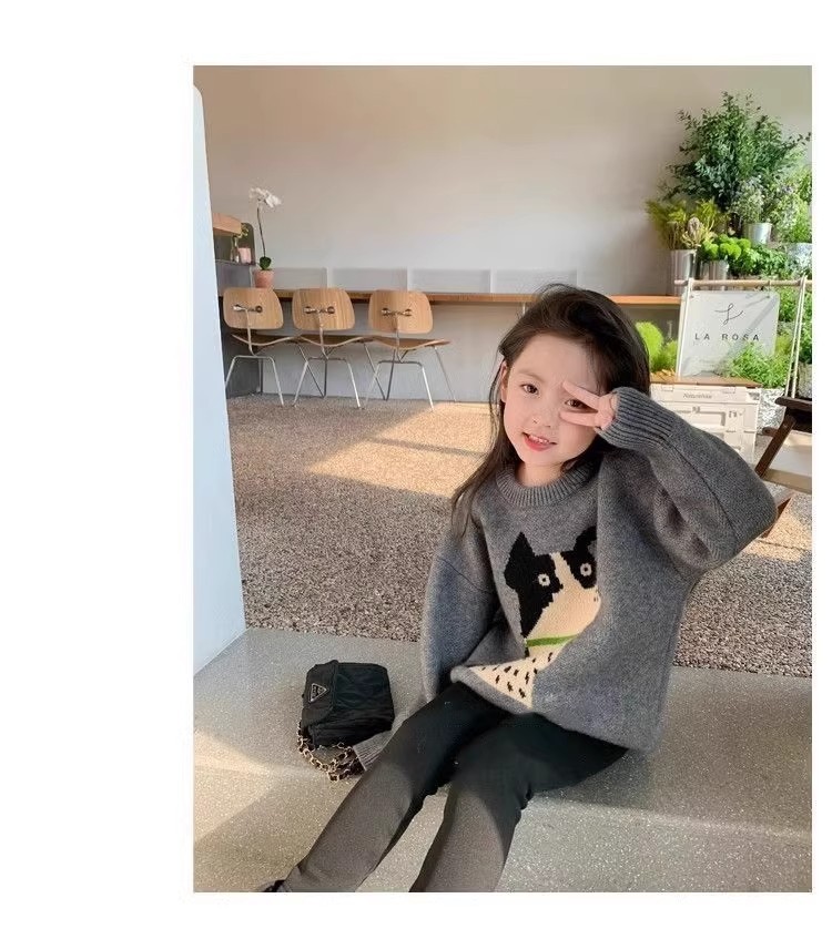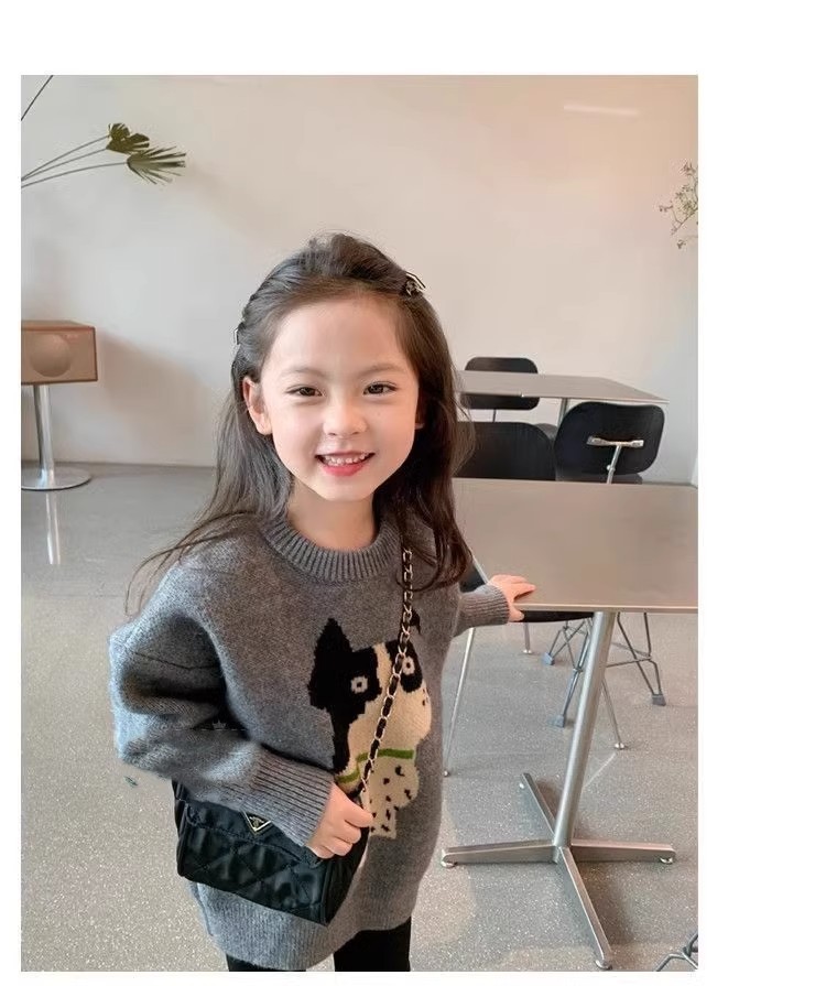 여자 스웨터 2024 새로운 봄과 가을 서양식 아동복 소녀 니트 셔츠 여자의 가을 겨울 두꺼운 탑스토어 가기
