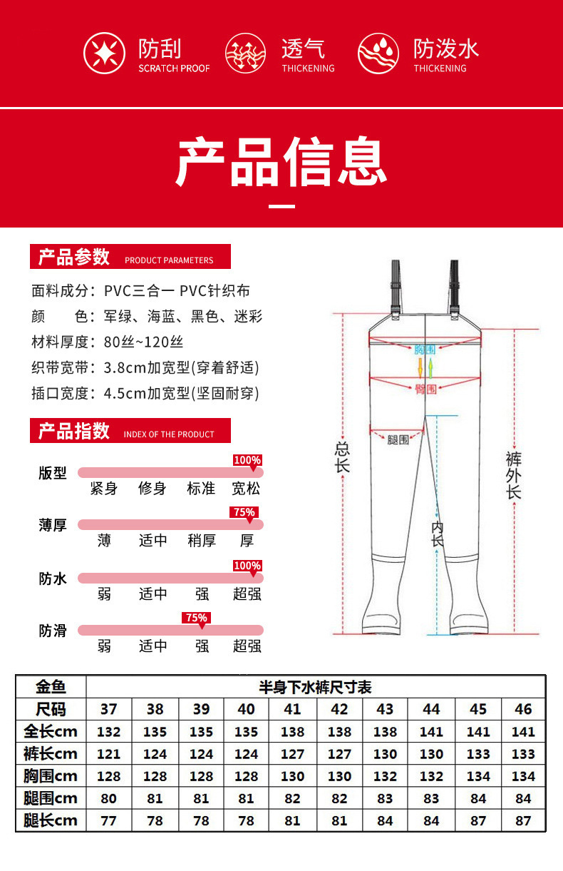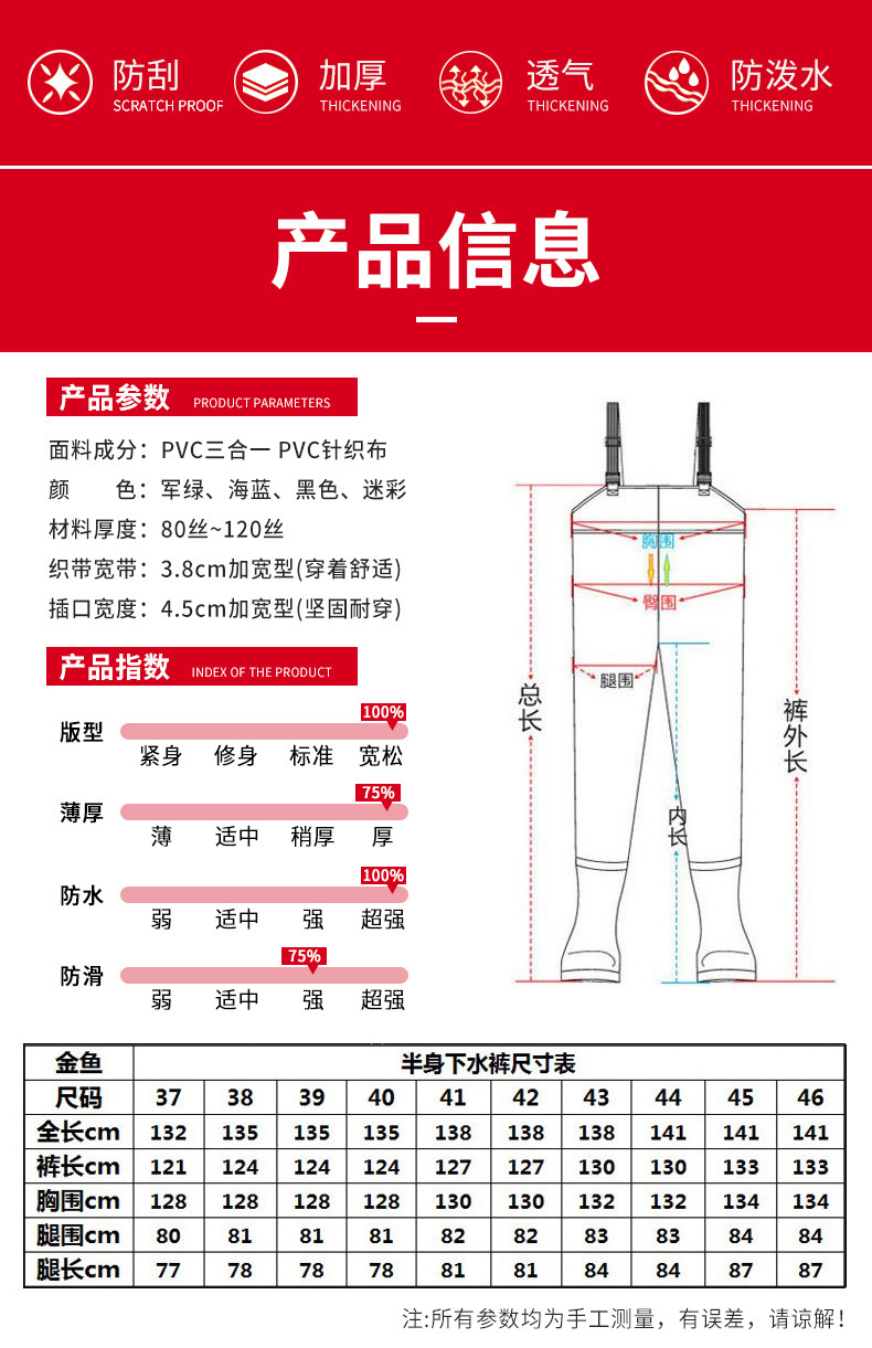 찌르는듯한 물 바지 반몸 방수 강판 단독 빗바지 낚싯대 바지 속옷 Ox-tendon 바닥 저수지
