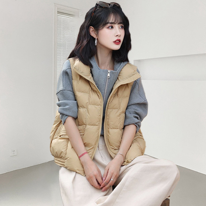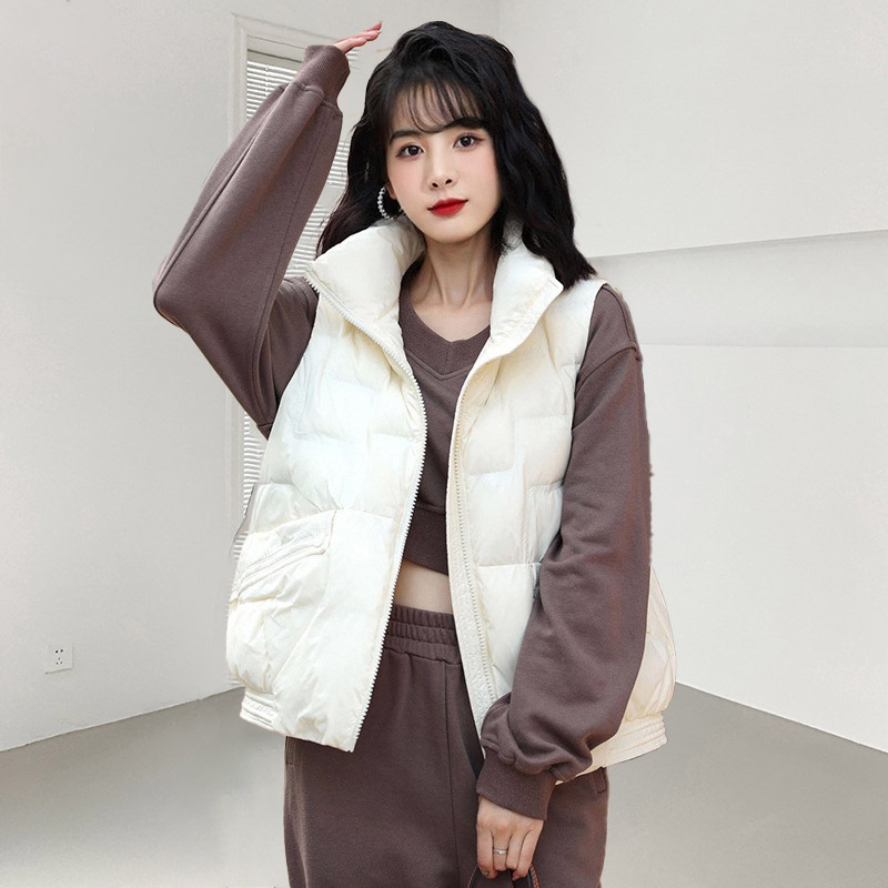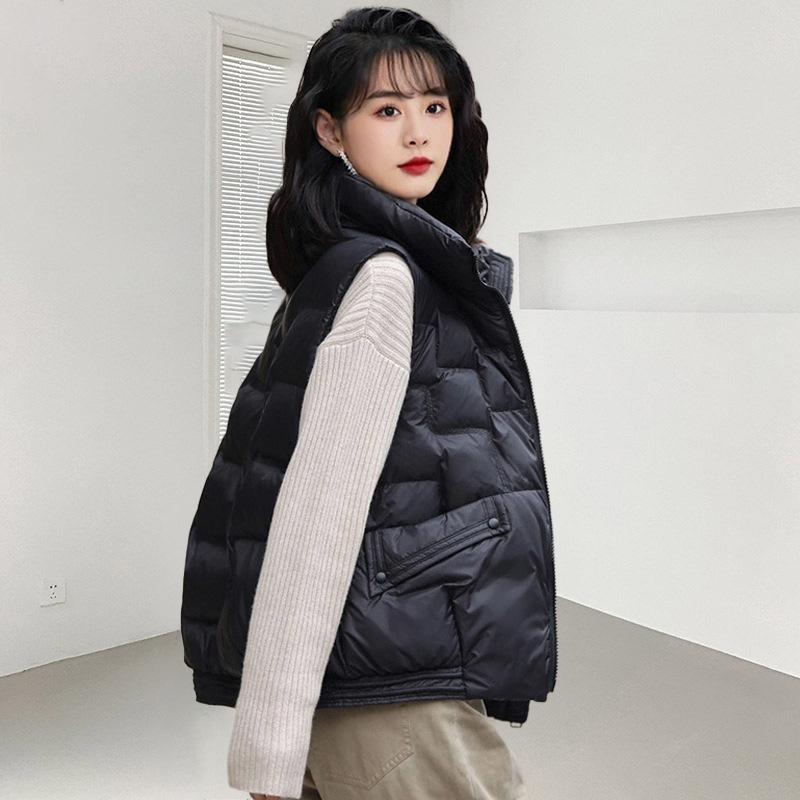 화이트 다운 조끼 여성 패션 여성 짧은 코트 조끼 민소매 다운 재킷