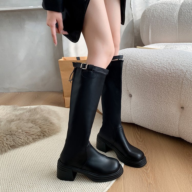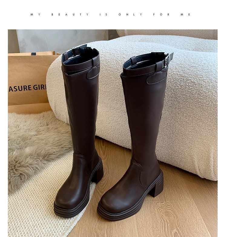 작은 높이이지만 무릎 긴 부츠 여성의 2024 가을 및 겨울 새로운 발-작은 영국 스타일 스트레치 패션 부츠스토어 가기