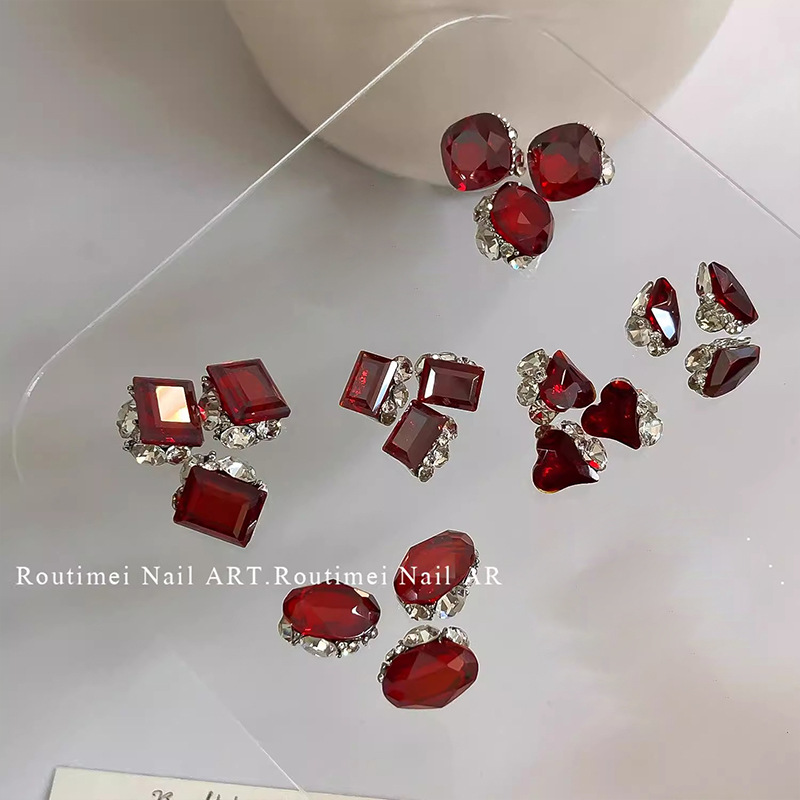 안코라 붉은 더미 드릴 네일 아트 쥬얼리 그물 붉은 지방 광장 비둘기 달걀 레드 마무리 더미 드릴 볼 완성 네일 아트 드릴스토어 가기