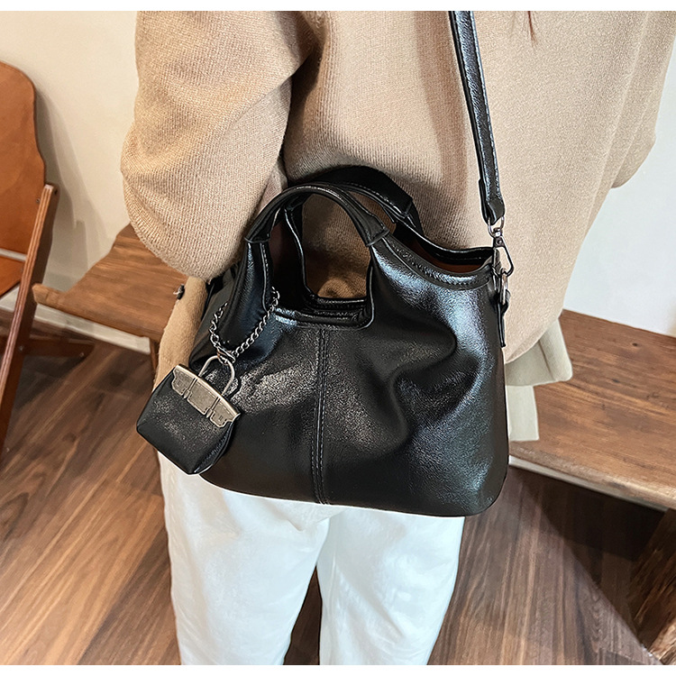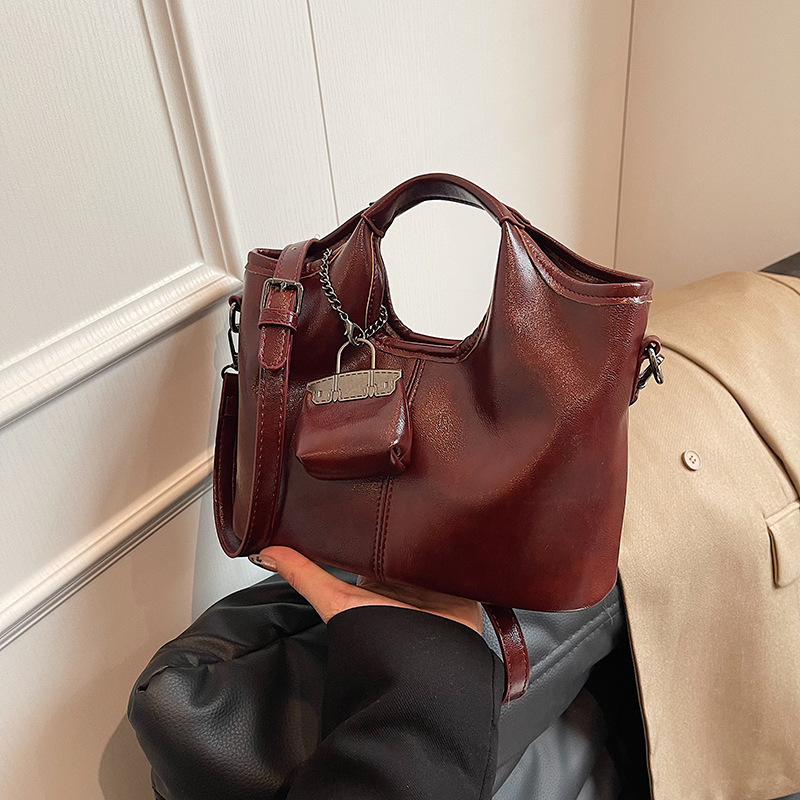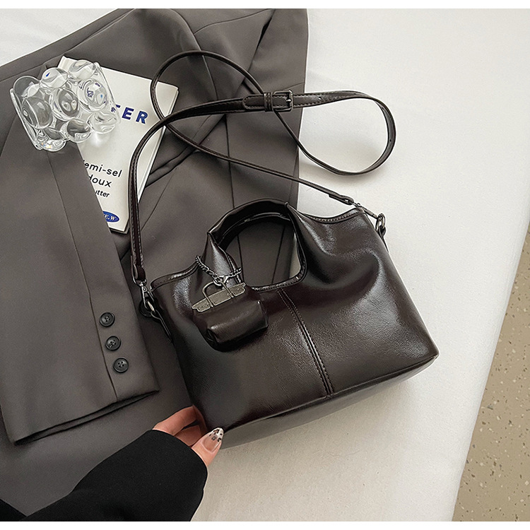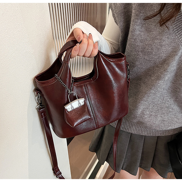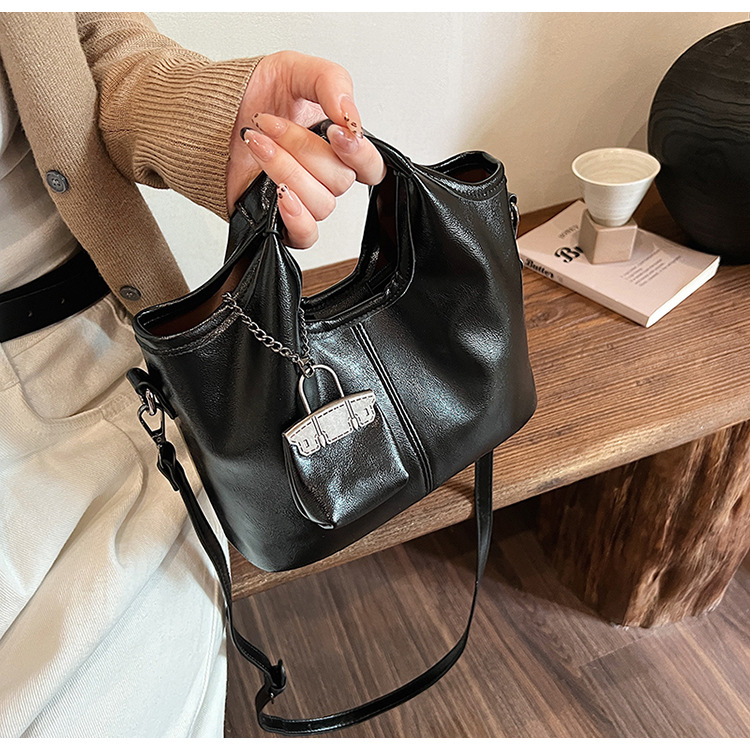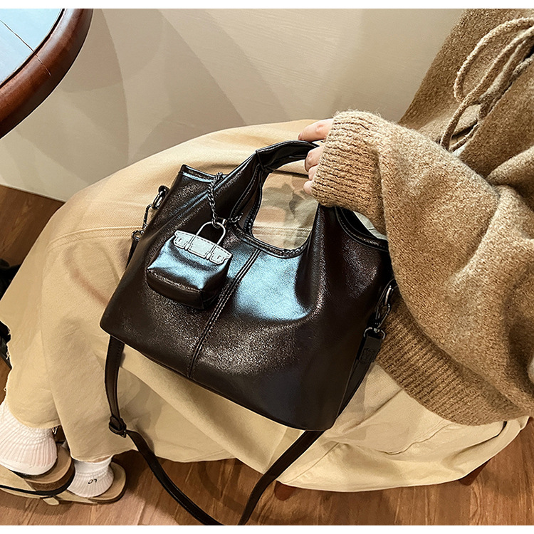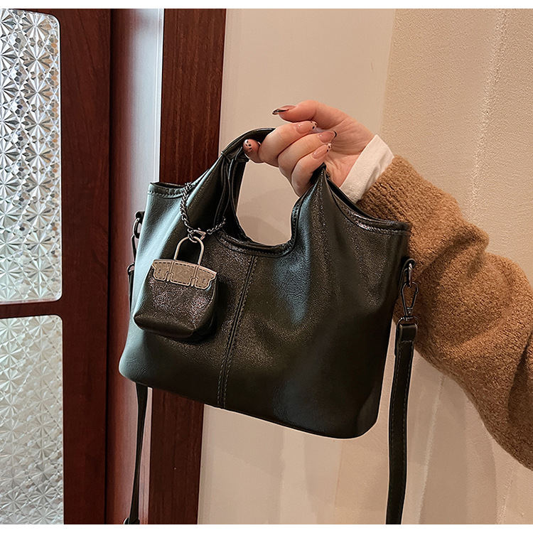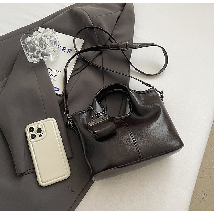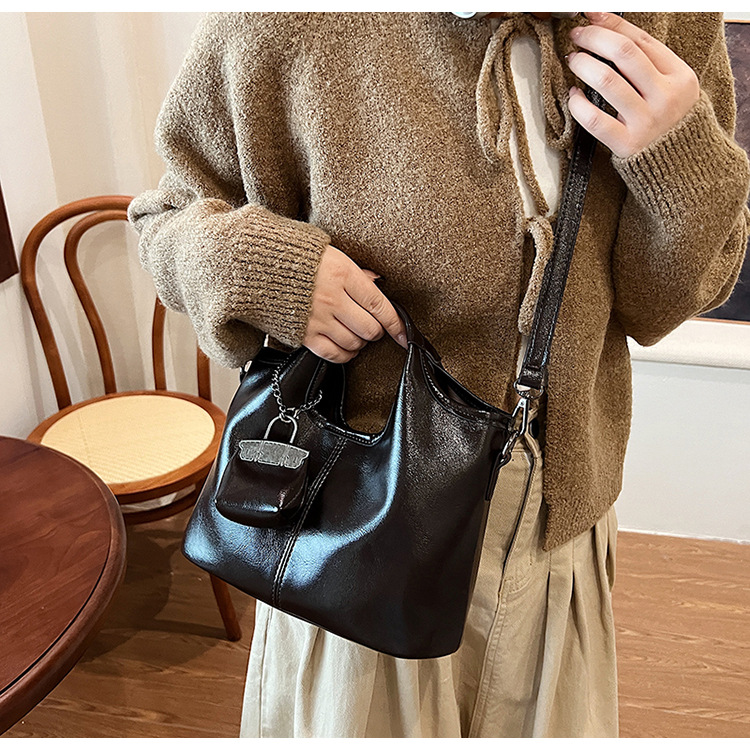 새로운 바느질 어깨 가방 휴대용 버킷 가방 가을 및 겨울 캐주얼 레트로 올 매치 크로스 바디 백 여성 가방 섬유