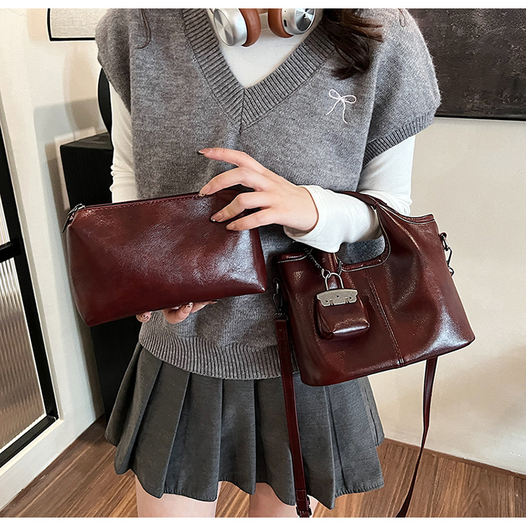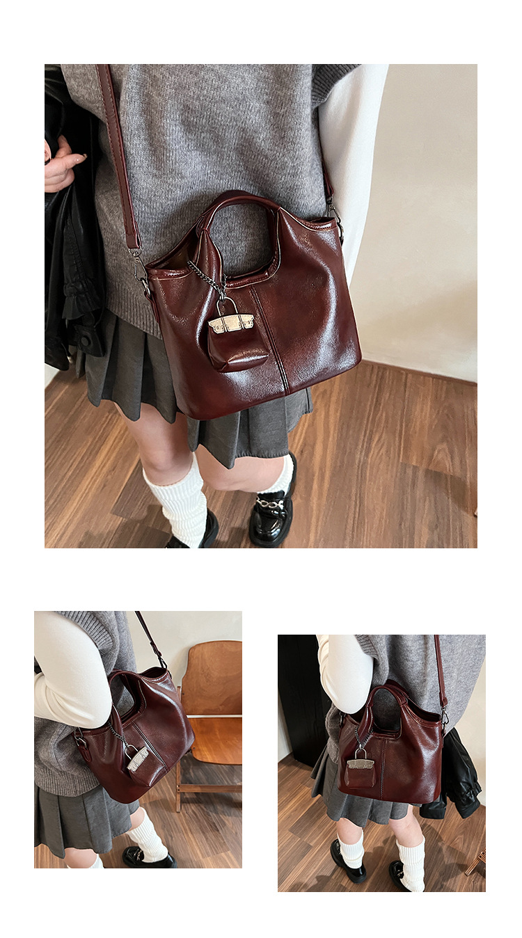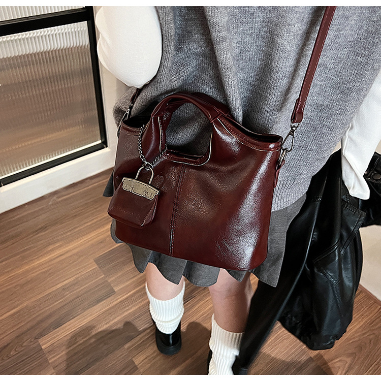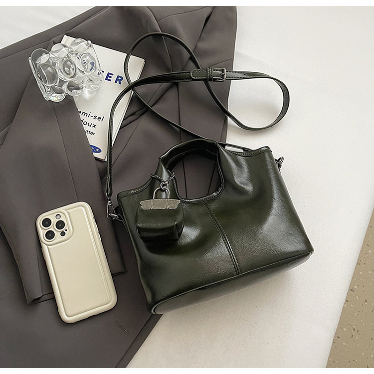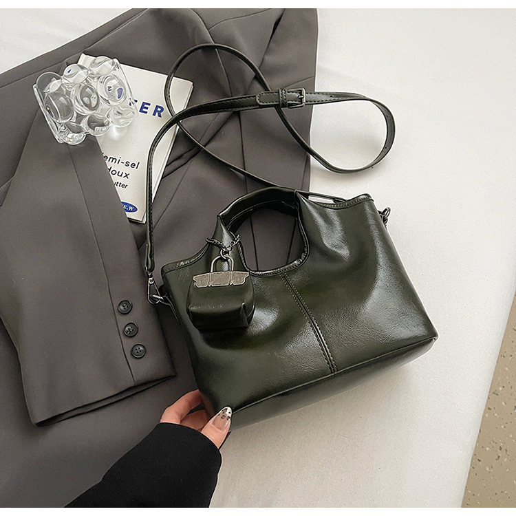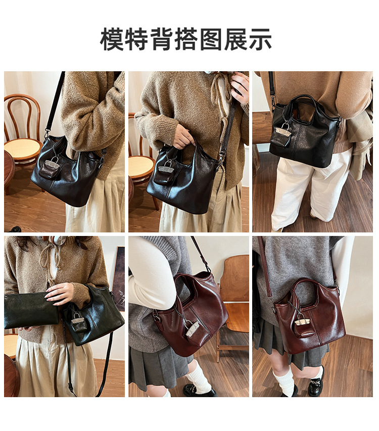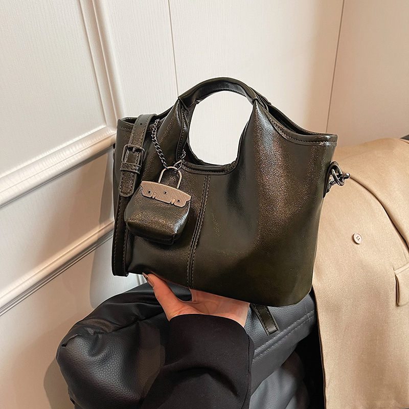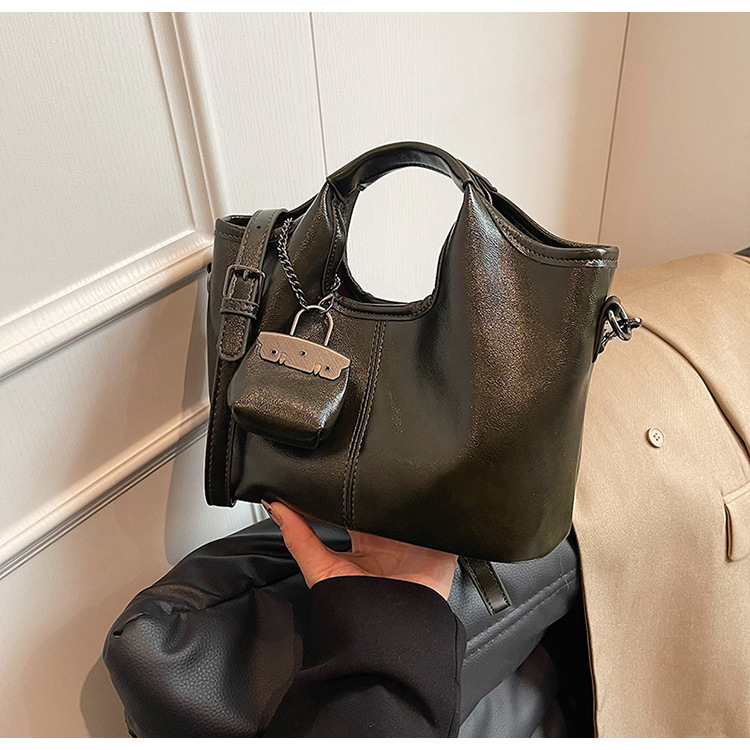 새로운 바느질 어깨 가방 휴대용 버킷 가방 가을 및 겨울 캐주얼 레트로 올 매치 크로스 바디 백 여성 가방 섬유