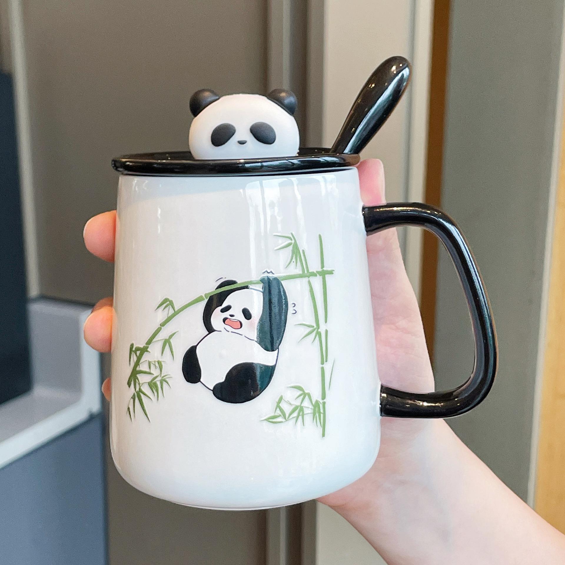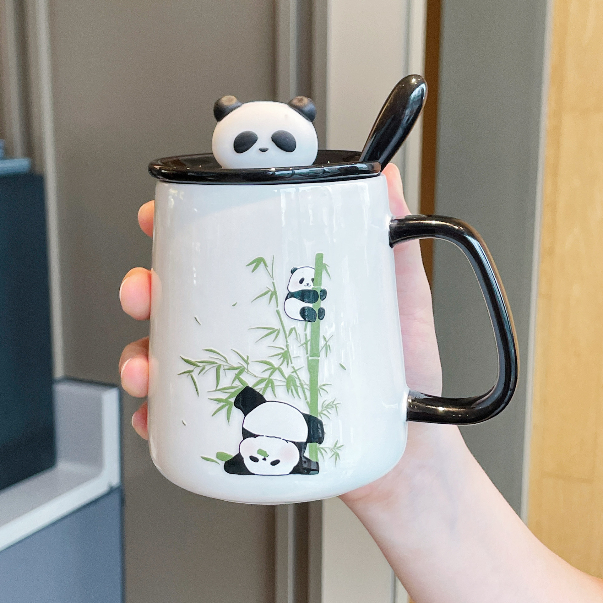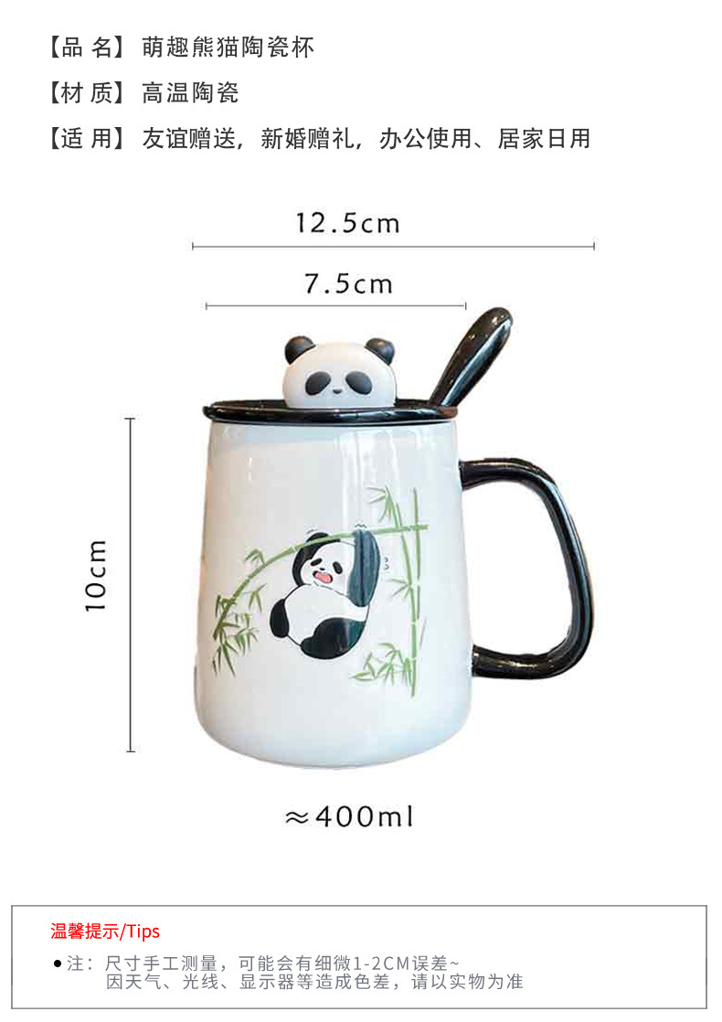 손으로 선물 선물 선물 상자 창조적 인 실용적인 컵 새로운 귀여운 팬더 세라믹 머그 커플 물 컵 가정스토어 가기