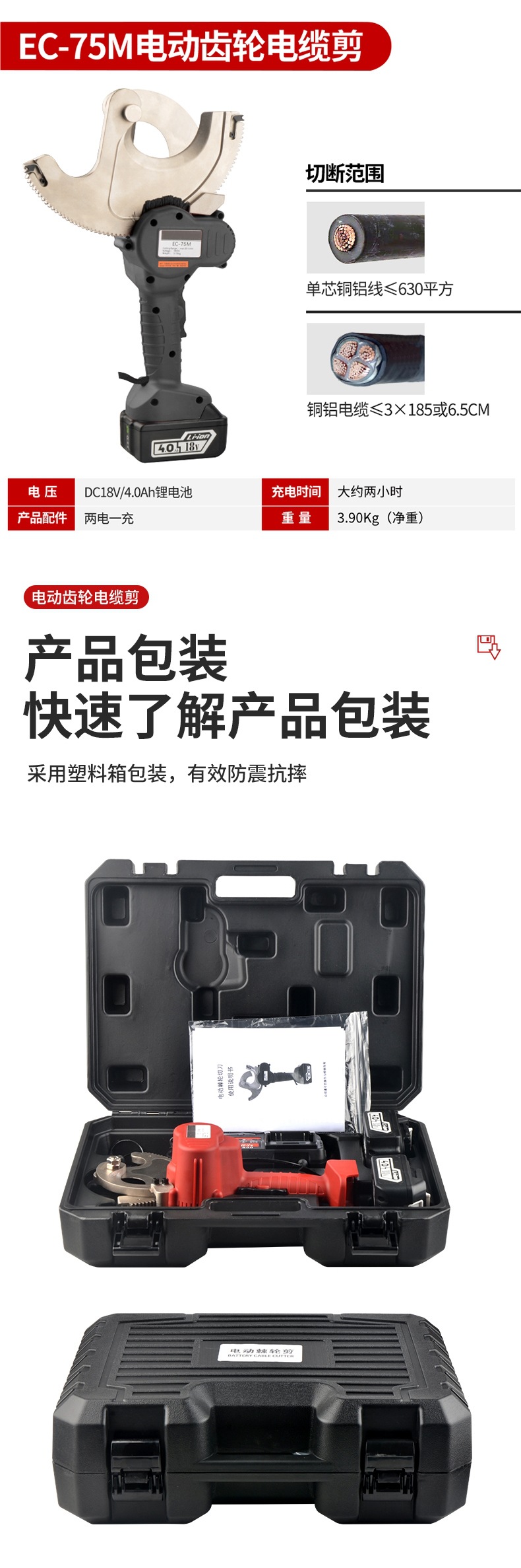• EC-75M은 4*185 또는 7cm 내부 구리 알루미늄 와이어를 절단합니다. 강철 연선은 절단할 수 없습니다.